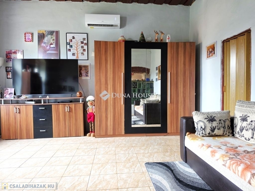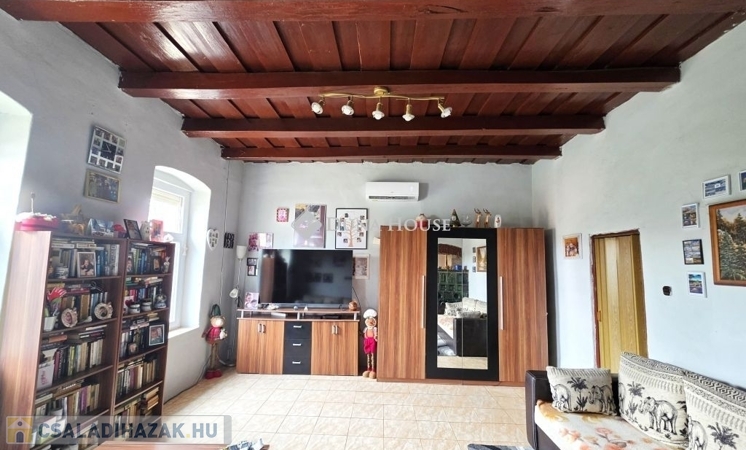 Pécstől 12 km-re Aranyosgadányban eladó egy 100 nm-es, jelenleg konyha-étkező-nappali+2 szoba elosztású, felújított, klímával és cserépkályhával fűtött vegyes falazatú családi ház, lemezgarázzsal, melléképületekkel, 1700 nm-es ÖSSZKÖZMŰVES sík telken.Az ingatlanon az elmúlt években a következő felújítások történtek:- új tető- új műanyag nyílászárók- új víz- és villanyvezeték hálózat (3 FÁZISÚ IPARI ÁRAMMAL!)- új burkolatok- konyhabútor cseréje- 2 db hűtő-fűtő klíma beszereléseIár: 39,9M FtA HÁZHOZ TOVÁBBI SZOMSZÉDOS ÖSSZ. 8000 NM TERÜLET MEGVÁSÁROLHAT+ 5M FT ÁRON!Belterületi építési telek mérete: 1209 nmKülterületi telek mérete: 6782 nm