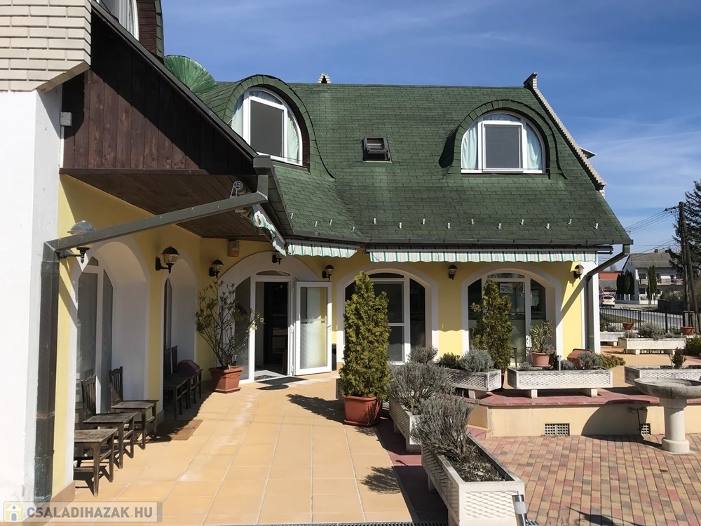 Ásványrárón, Győr és Mosonmagyaróvár közötti településen, 450 m2-es, összközműves telken lévő, jelentős felújításokon átesett, (fűtéskorszerűsítés, nyílászárócsere, vezetékek cseréje, burkolatcsere, festés, stb.), 3 szintes épületben, 10 db külön bejárattal rendelkező hálószobás, (28-30 fő befogadására alkalmas) - minden hálószobához tartozó saját fürdőszoba - WC-ből, tágas társalgóval, étkezőből, konyhából álló – 339 m2-es hasznos alapterületű KLIMATIZÁLT panzió/hotel/családi ház, 134 m2-es dél-nyugati TERASSZAL, ERKÉLLYEL , teljes gépesítéssel eladó.
