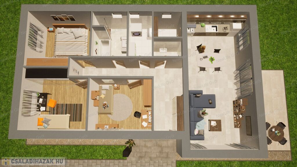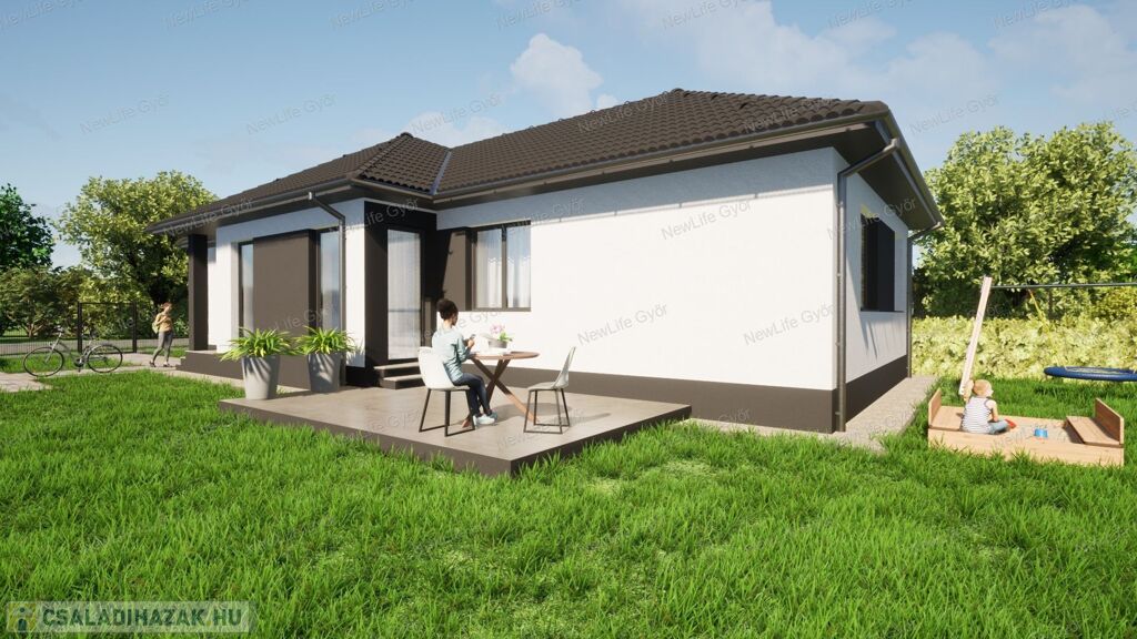 A családi házra CSOK Plusz, kedvezményes lakáshitel, illetékmentesség is igényelhető/felvehető, így az összes támogatás kihasználható rá, ami jelenleg elérhető.