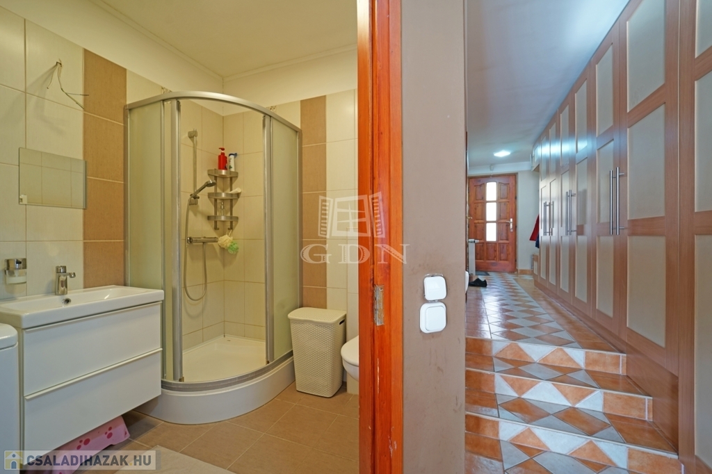 A kertben a beton burkolatú udvar rész alatt 30m2 tárolásra alkamas helyiség van.