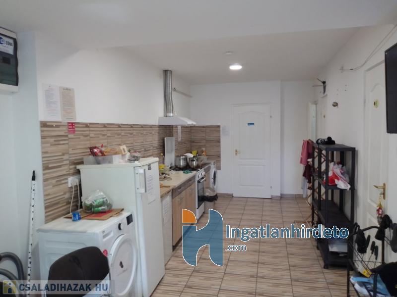 Elhelyezkedése: Belterület Tájolása: Dél-nyugai tájolású Állapota: Használt - felújított Komfort besorolása: Dupla komfortos Építési éve: 1975 Alapterülete: 270 m2 Telekterülete: 850 m2 Szobák száma: 13szoba Felújított: Felújított Felújítás éve: 2019 Felújítás során elvégzett munkák: Festés, Villanyrendszer csere, Vízrendszer csere, Fűtésrendszer csere, Csempe csere, Járólap csere, Parketta csere, Álmennyezet beépítése, Fűrdőszobai szaniterek cseréje, Belső átépítés, Utólagos vízszigetelés, Tetőszigetelés, Külső hőszigetelés, Új külső vakolat, Nyílászárók cseréje, Hőszigetelt nyílászárók beépítése, Új beépített bútorok, Lépcsőház felújítás Közművek: Gáz, Víz, Villany, Csatorna Gázellátás: Vezetékes Vízellátás: Vezetékes víz Melegvíz-ellátás: Gázkazán Áramellátás: 230V/380 V Fűtés módja: Gáz Fűtés típusa: Cirkó Homlokzat állapot: Újszerű Építési mód: Tégla Tető formája: Magas Tető anyaga: Pala Parkolási lehetőség: Utcán, Telken Kilátás: Utcafronti kilátás, Udvari kilátás Napelem: Nincs Jellemzői: Alacsony rezsi, Csendes környék, Jó közlekedés, Két bejárat, Étkező, Beépíthető tetőtér, Beépített konyhabútor, Kert, Kerítés, Ipari áram, Parketta burkolat, Egyedi vízóra , Zöldterület, Jó közbiztonság Energetikai besorolás: Nincs adat Egyéb jellemzők: Terasz, Pince Tv, Internet: Kábeltévé, Internet, Vezetékes telefon Közelben: Iskola, Óvoda, Vasútállomás, Autóbuszállomás, Helyi autóbuszállomás, Orvosi rendelő, Bolt, Gyógyszertár, Postahivatal, Vendéglátó egység, Autópálya Rezsi költség(Ft): 40000 Terhelések: Tehermentes ingatlan Eladásra vonatkozó információk: Azonnal beköltözhető