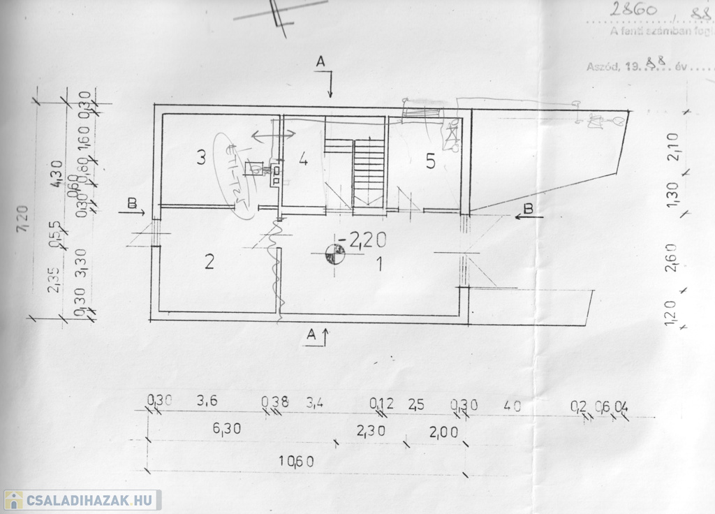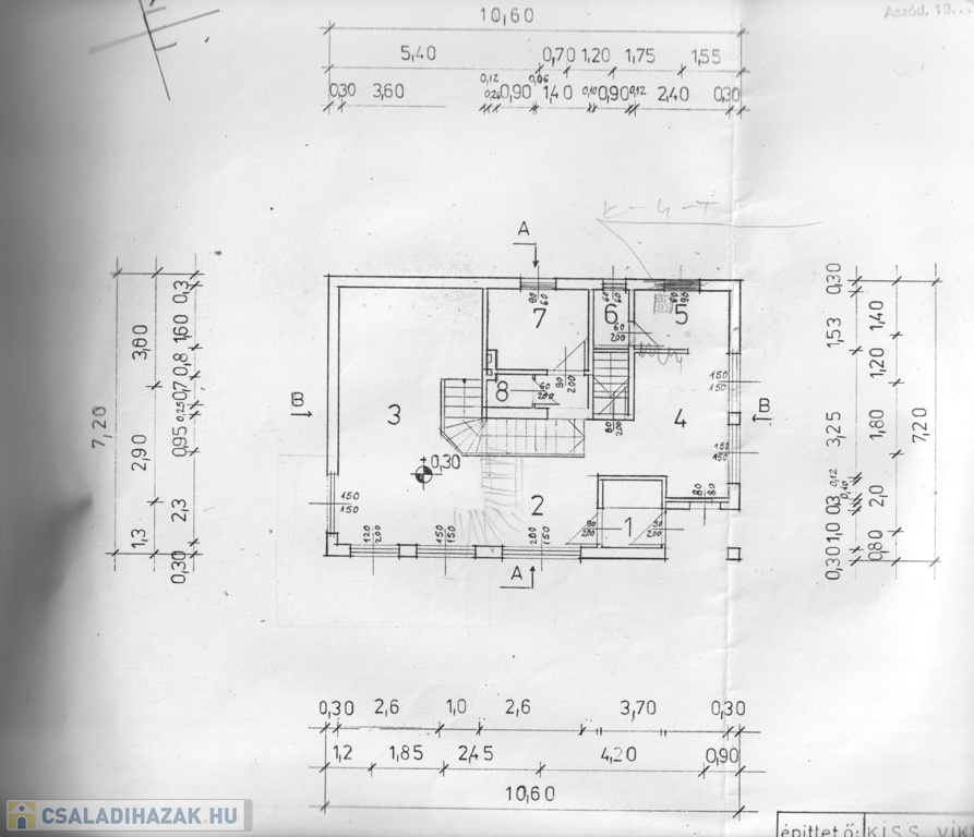 1988-1991 között épített családi ház. A falazás 30 cm-es tégla, rajta 10 cm-es szigetelés. A legutolsó felújítás 2016-os, amikor új, fa nyílászárók kerültek beépítésre. A fűtést hagyományos gázkazán biztosítja. Bútorozatlan, akár azonnal beköltözhető. Értékét növeli a riasztó, a padlófűtés, a földszinti kandalló és a motorizált garázsajtó. A konyha melletti, utcára néző teraszon egy kemence várja, hogy újra használják. Az alaprajzok az eredeti tervet tükrözik, amelyhez képest a mai állapot minimálisan különbözik: a földszinti bejárat már nem az oldalsó kertre, hanem az utcafrontra néz, így kialakításra került egy előszoba, az emeletre vezető lépcső formája változott, kandalló került beépítésre, illetve az alagsorban egyes falak máshova kerültek. A garázs mérete 19,8 m2.