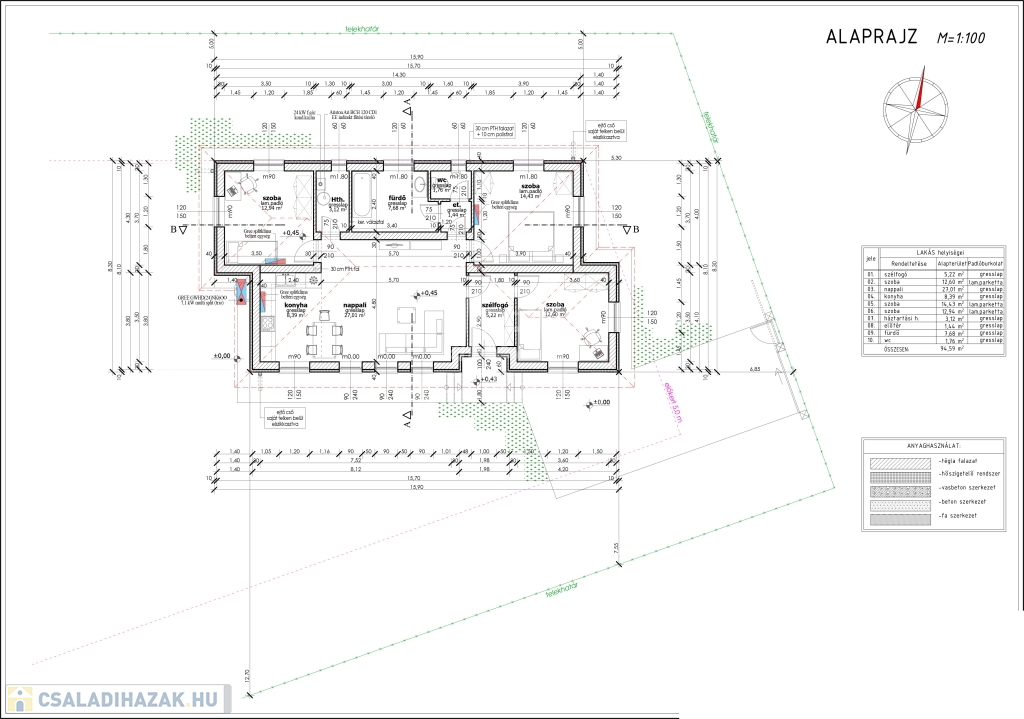 Az ingatlan Porotherm P30N+F téglából épül, fa födémmel. Külső nyílászárók korszerű 3 rétegű üveggel szerelt műanyag themo kivitelűek lesznek.