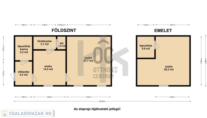 - emeleten egy szoba található( (28,3 m2).