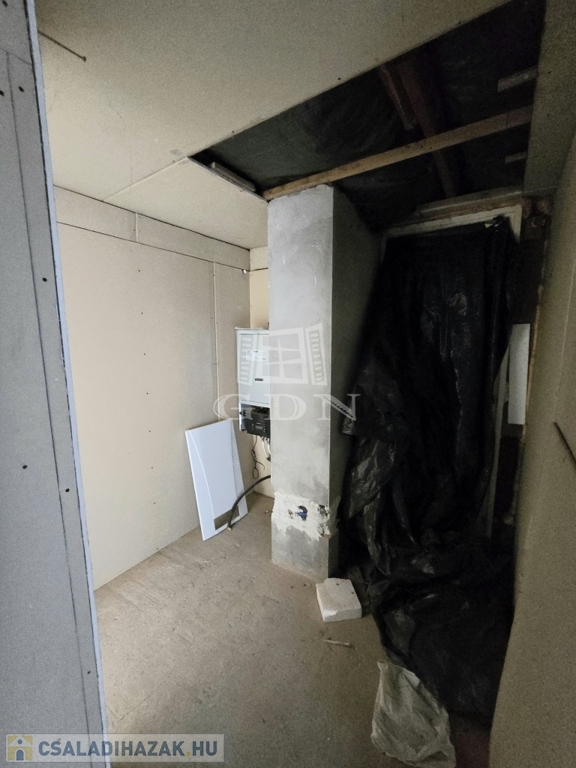 Az ingatlan alatt pedig használható még egy 30m2-es szuterén mely lebetonozása megtörtént, valamint egy 6m2-es kamra is található. Az otthon melegéről vegyes-és kondenzációs kazán gondoskodik.