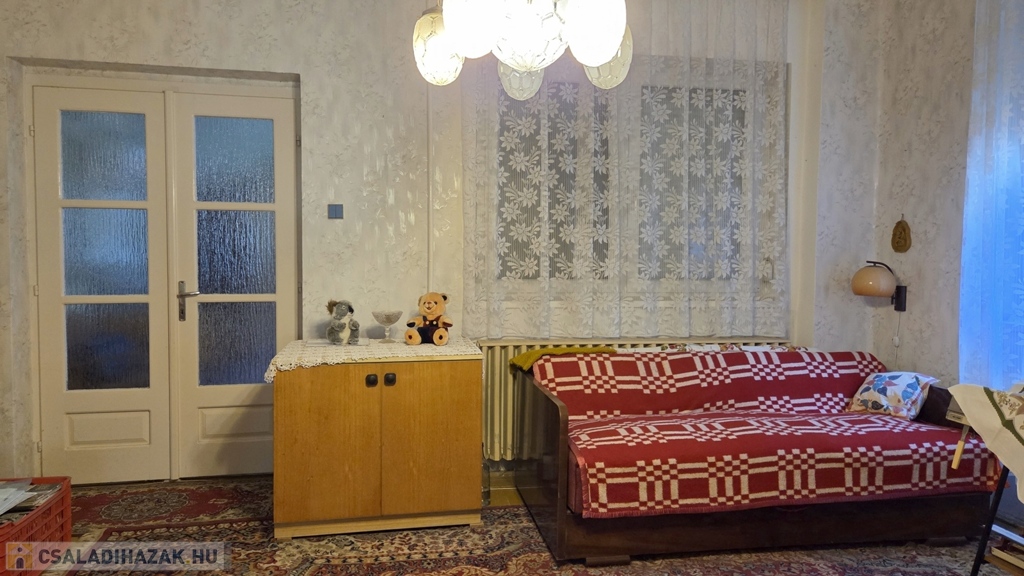 Szerkezetileg jó állapotú, 5 szobás ház, tágas udvarral, a kertben gyümölcsfákkal.
