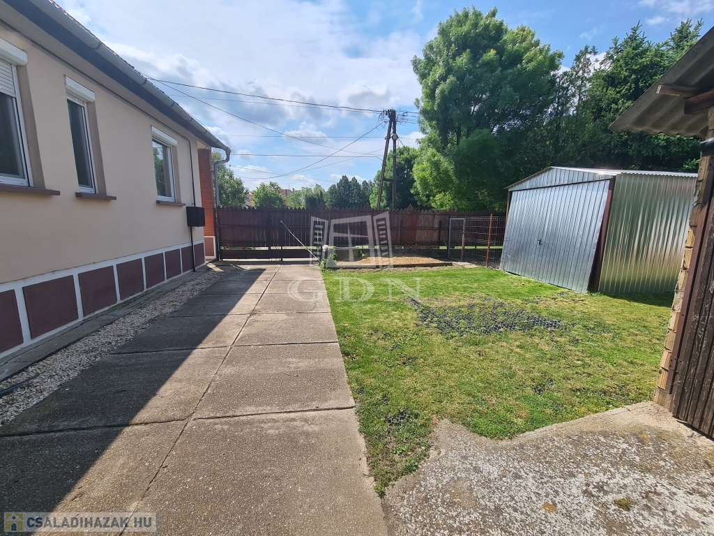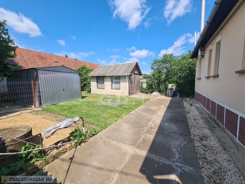 A 334 m2-es udvarban található egy kisebb tégla épület mely garázsként használható, illetve egy mobilgarázs amely ugyan csak az ár részét képezi.