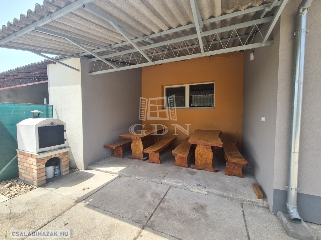 Az ingatlanból kilépve az első udvarra érünk , ahol remek lehetőség nyílik kerti sütögetésekre, családi összejövetelekre hiszen a palettát tovább bővíti egy fedett terasz.