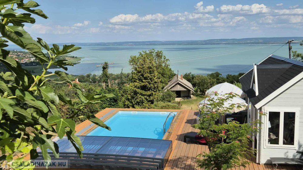 Exkluzív, panorámás családi ház eladó Badacsonytomajon, hatalmas telekkel, wellnessrészleggel, borospincével és prémium kialakítással. Ideális állandó otthonnak, nyaralónak vagy befektetésnek a Balaton-felvidéken.