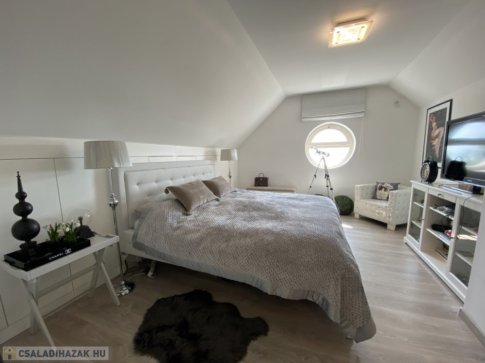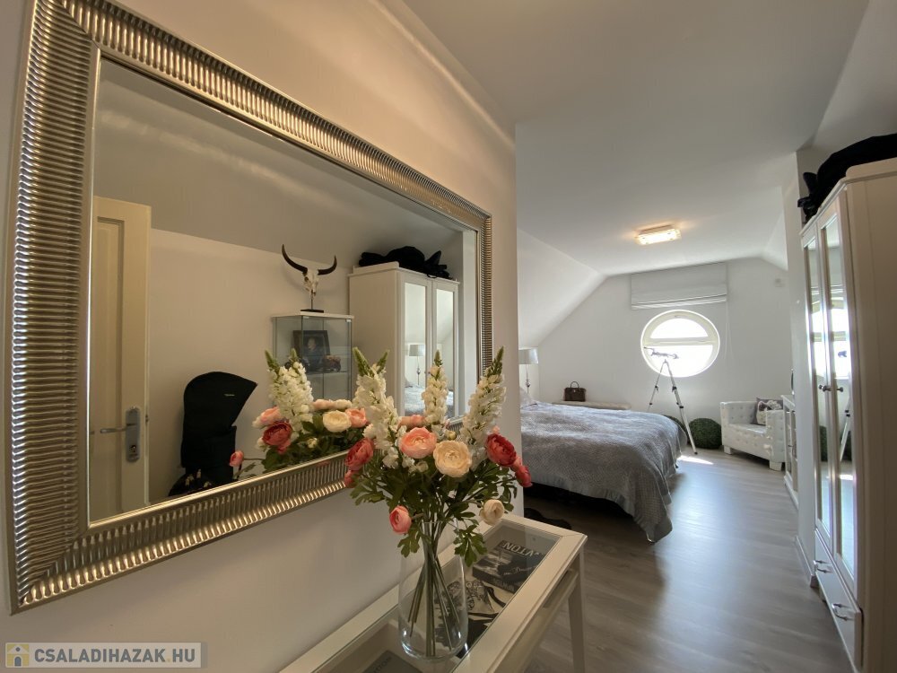 Ezen a szinten továbbá 3 hálószoba van, kettőből saját fürdőszoba is nyílik, míg a harmadik hálószobához egy kisebb gardróbszoba kapcsolódik.