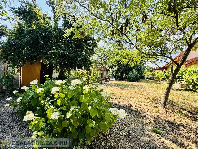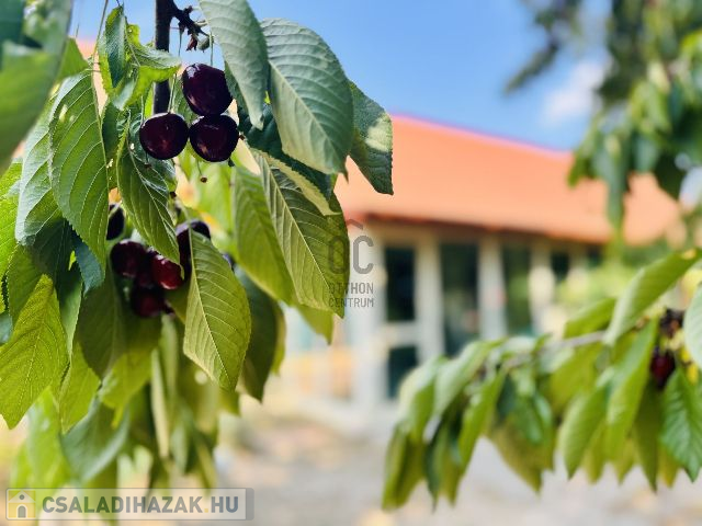 A ház körül elterülő 1989 nm-es telek nemcsak a természet közelségét biztosítja, hanem számtalan lehetőséget kínál. Körte, alma, szilva, cseresznye, szőlő található a kertben. Amelyeket FÚRT KÚTRÓL lehet öntözni!