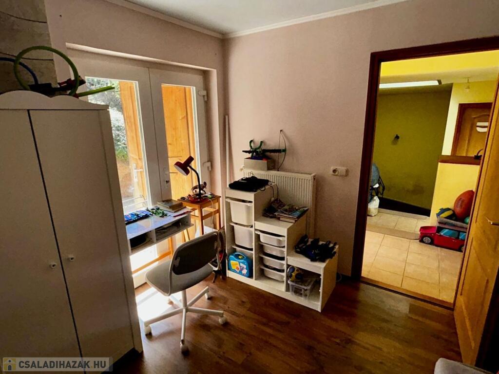 Az alsó szinten az előszobába lépünk, innen közelíthetjük meg a konyha- étkezőt, egy fürdőszobát, valamint egy szobát és a lépcsőházat. A konyhából egy fa ajtón belépve találjuk magunkat a ház egyik egyedi, különleges részében, a 117 m2 nagyságú, téglával kirakott pincében, mely akár hobby borászkodásra is alkalmas lehet az arra kedvet kapó új tulajdonosnak. A lépcsőn feljutva az emeleti részen található még 3 db szoba, egy fürdőszoba, egy előtér és innen juthatunk ki a hátsó teraszra is.