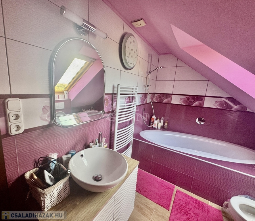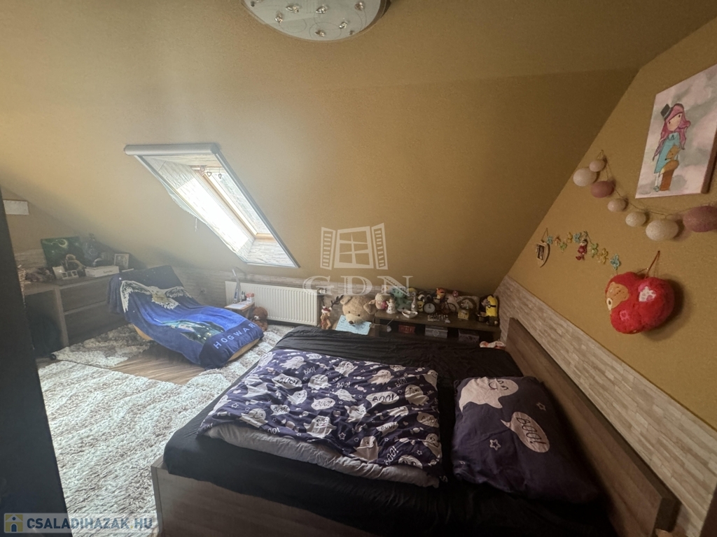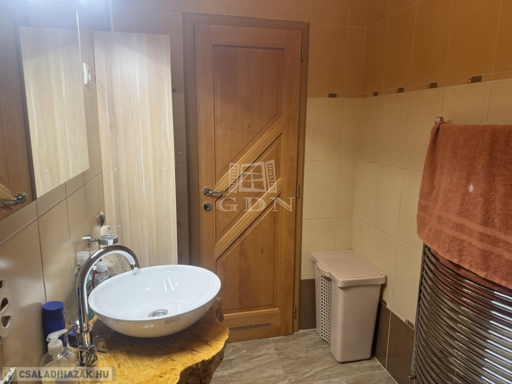 A házba belépve a földszinten világos tereket találunk, pazar nappali, amerikai konyha, 6 szoba, kamra, 2 fürdőszoba, WC garantálja a maximális kényelmet. A felső szinten, 3 szoba, nappali , fürdőszoba, található.