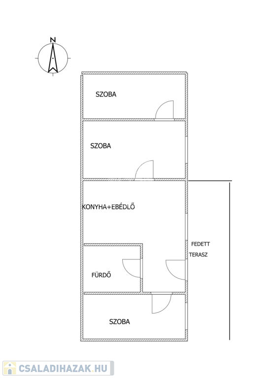 A házrészben 3 szoba, konyha + ebédlő, fürdőszoba, valamint a bejárat előtt fedett terasz található, amely kellemes pihenőhelyet biztosít.