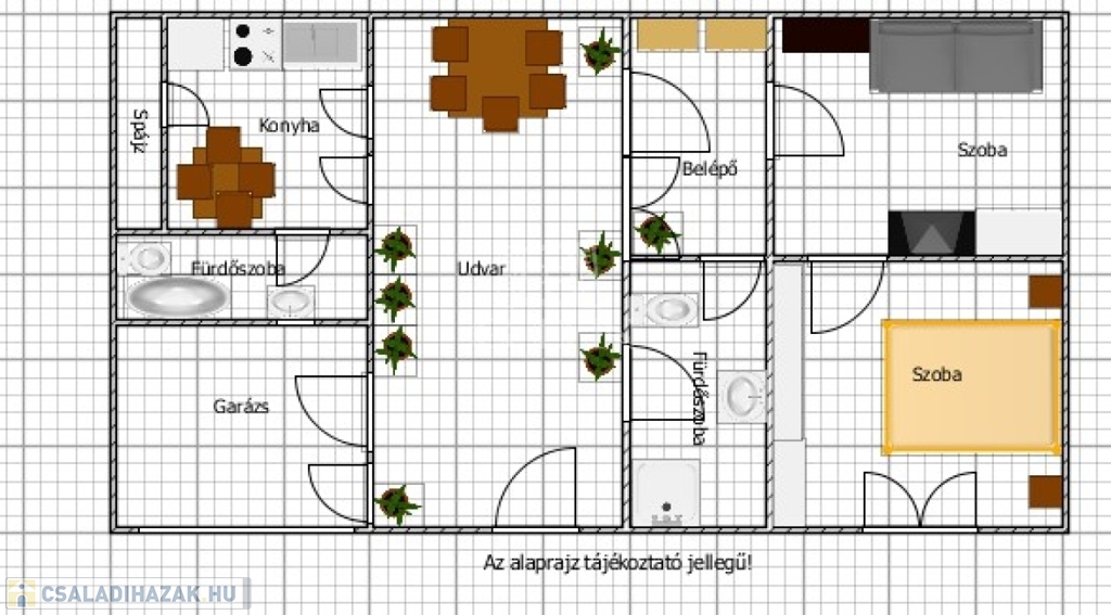 A saját, térkövezett udvar rendezett, könnyen karbantartható, míg a szerelőaknás garázs nagy előnyt jelent autótulajdonosoknak vagy kisebb vállalkozások számára.