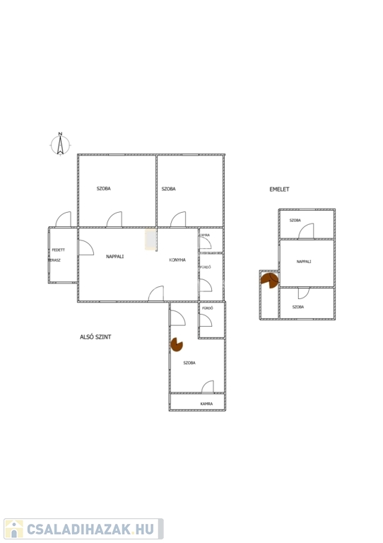 Hátsó lakrész (2000-es évek, kétszintes, ~85 m²):