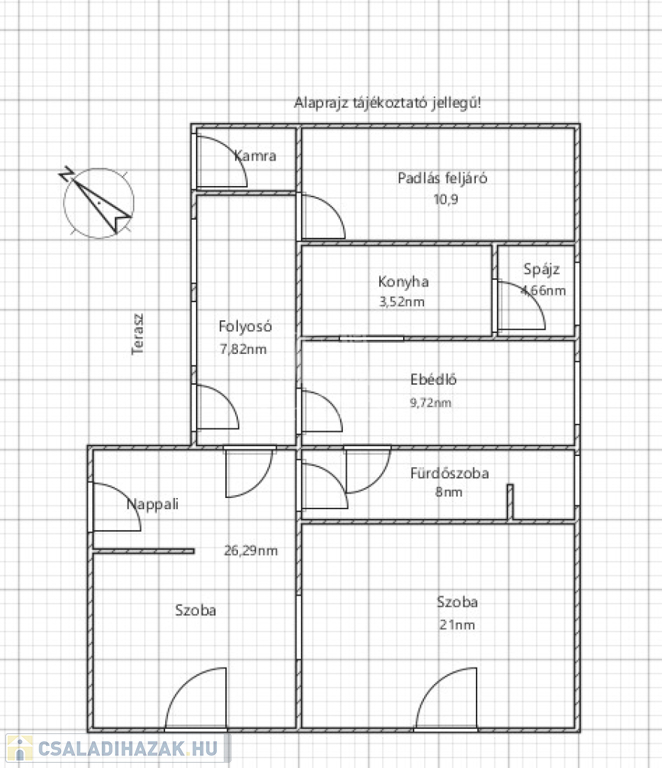 Az ingatlan 540 nm-es telken helyezkedik el, praktikus elosztással: