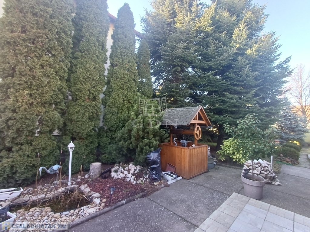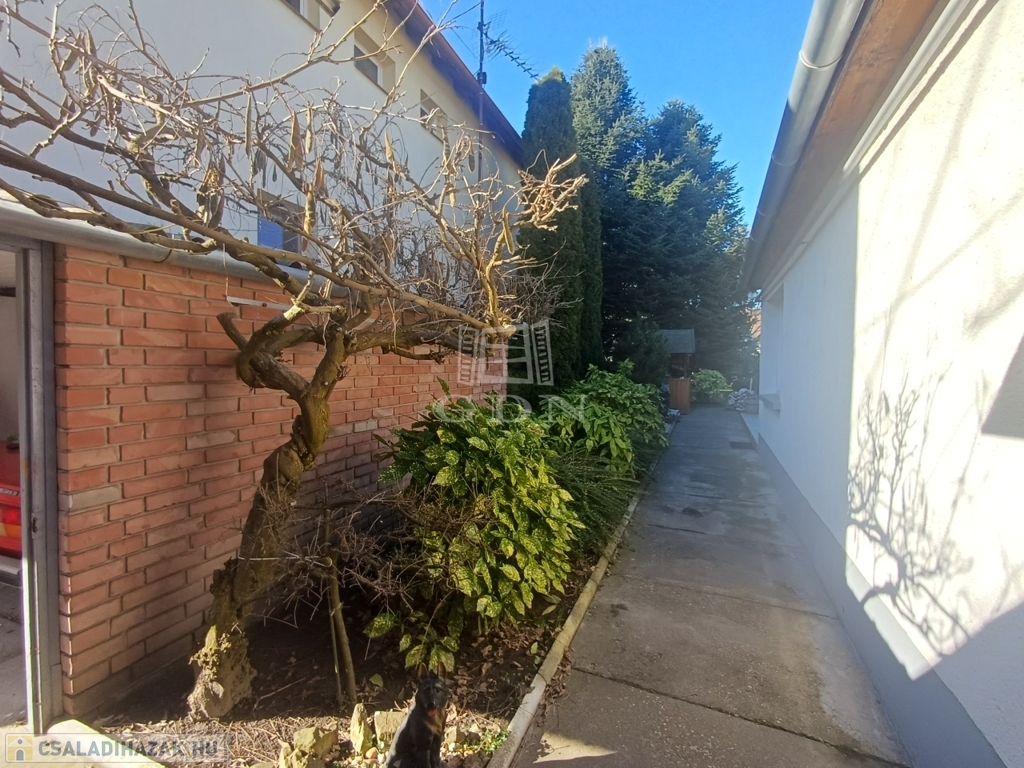 A házhoz pince is tartozik, valamint az udvarban fúrt kút segíti a kert gondozását. Az utcáról nyíló, elektromos kapuval ellátott 14 nm-es garázs kényelmes parkolást biztosít.
