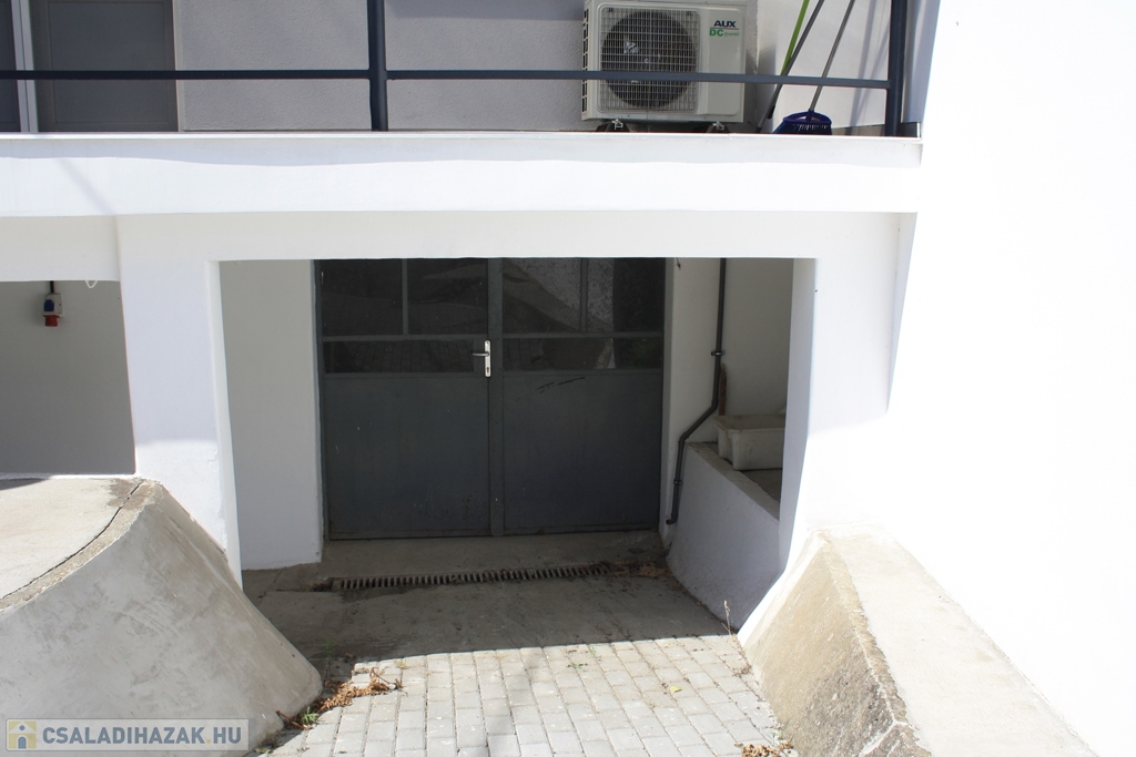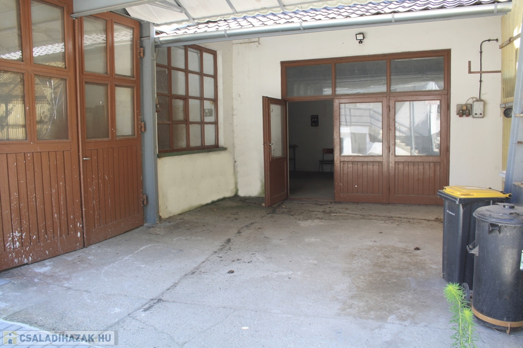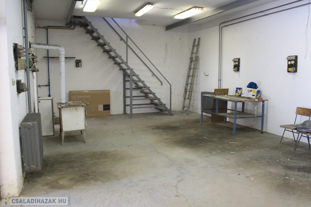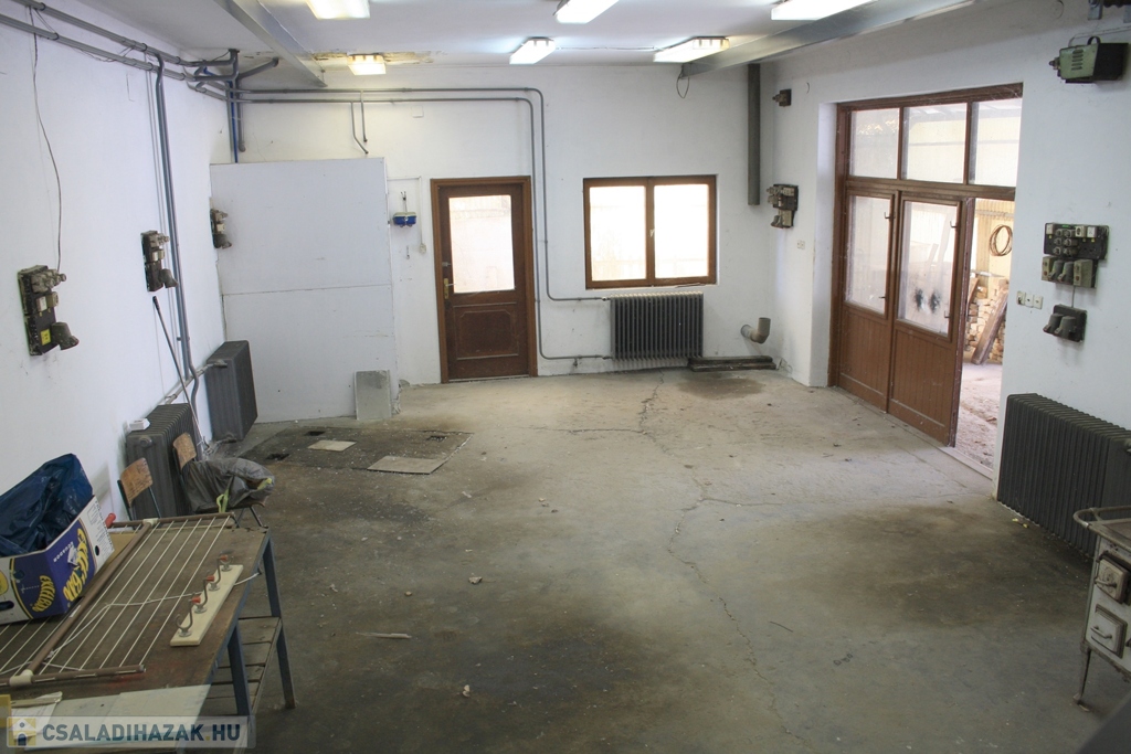 A telek hátsó részében egy stabil, emeletes melléképület, ami korábban műhely volt. A földszinten egy 60 nm-es és egy 20 nm-es terem található. Az emelet 60 nm-es, itt a vizes blokk és irodák vannak. Az épület előtt fedett beálló, ahová tgk is befér.