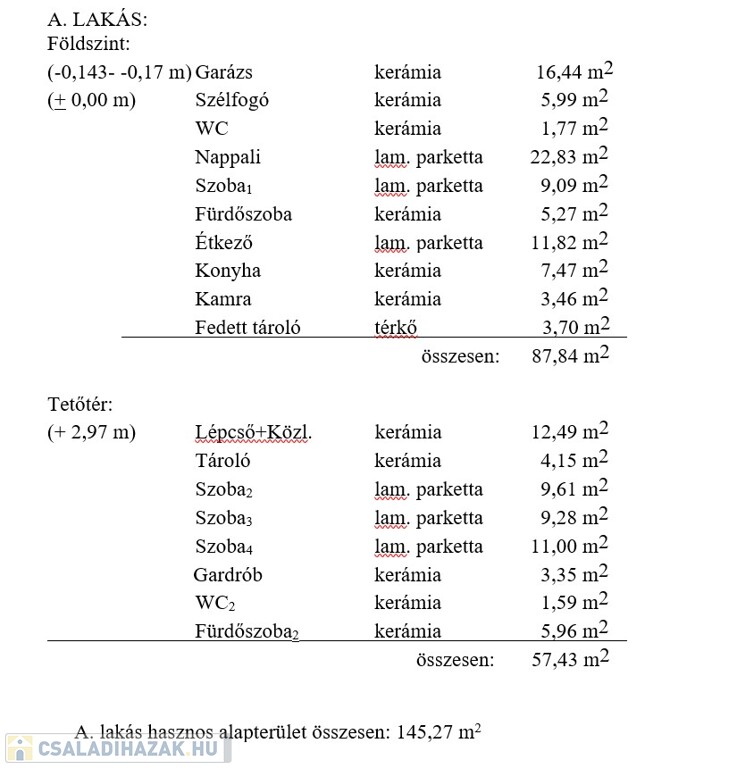 Lakóterülete147 nm + garázs + terasz + udvar.