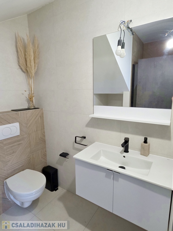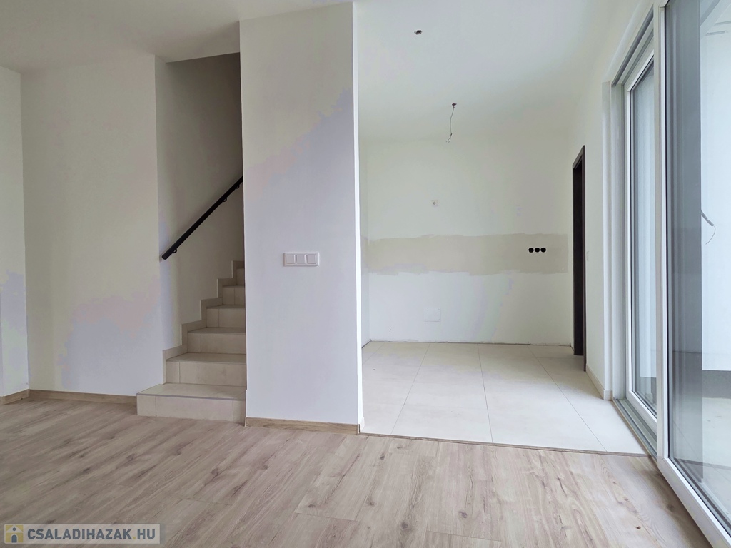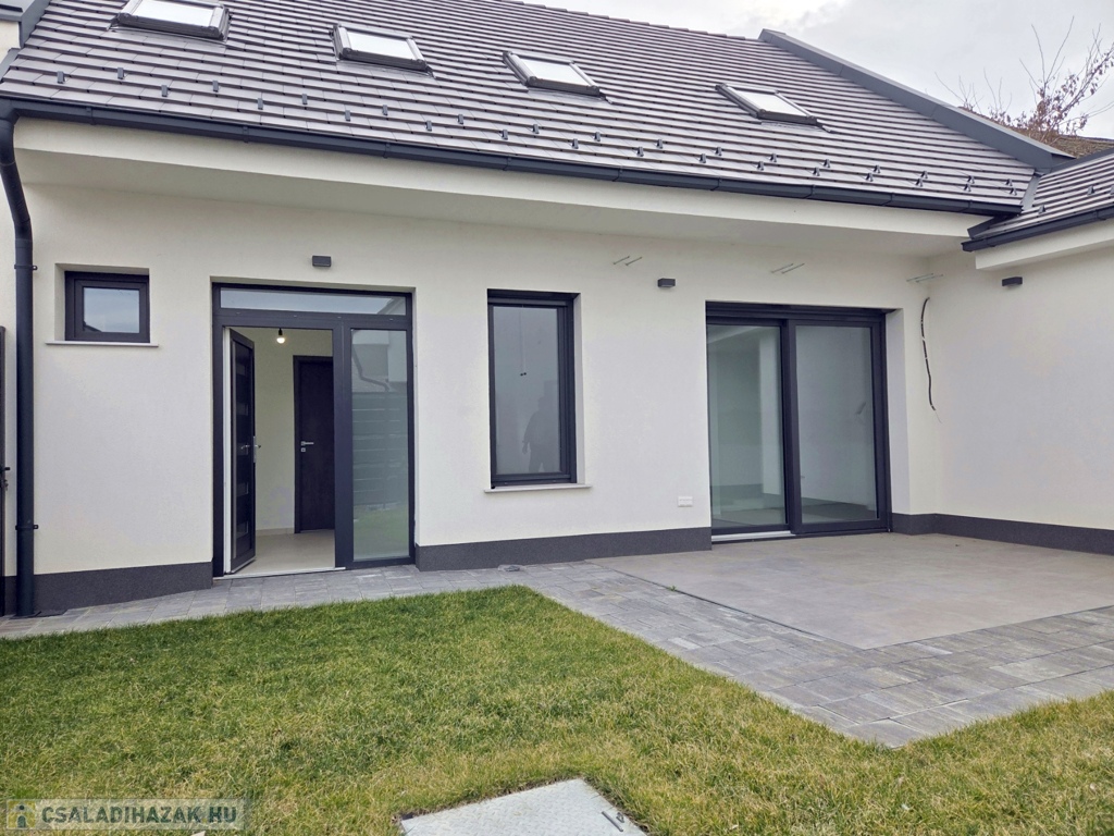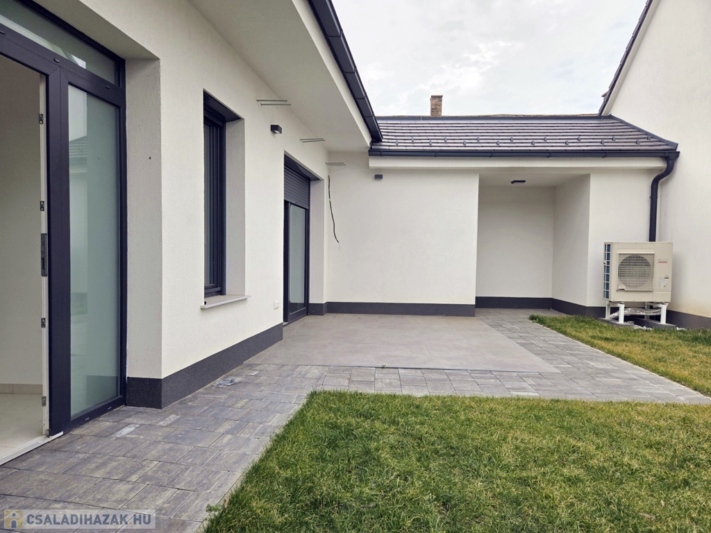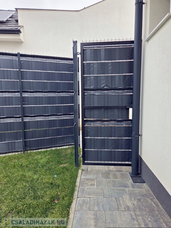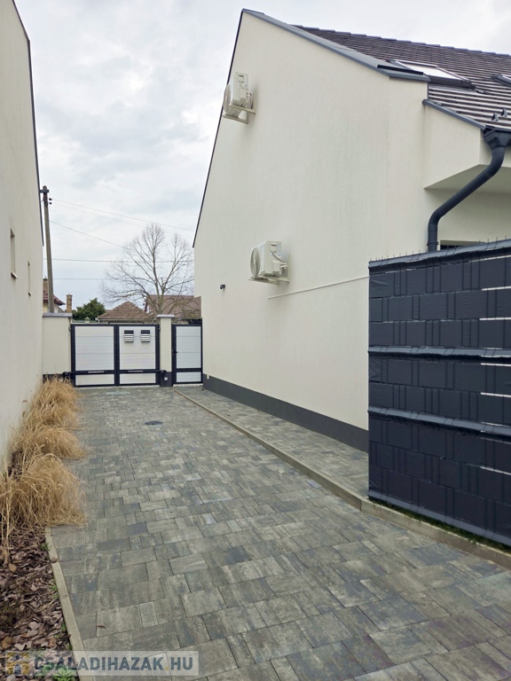 Baján, belváros közeli, új építésű, iker családi ház garázzsal, tárolóval, terasszal, kis kerttel. Modern dizájn.