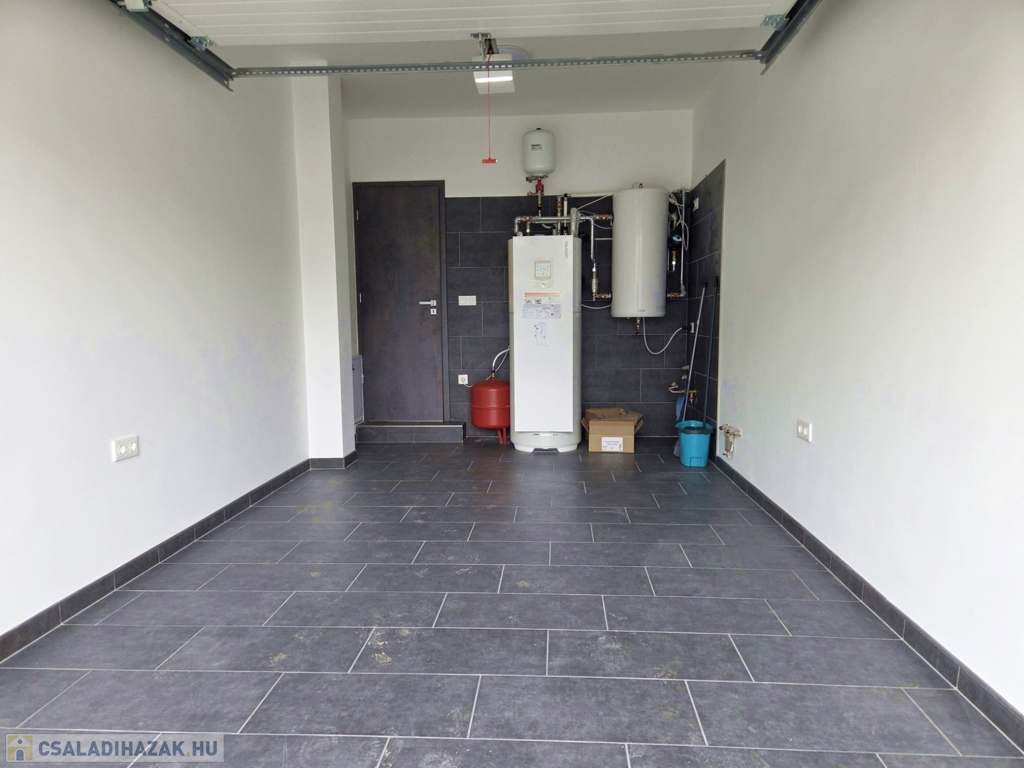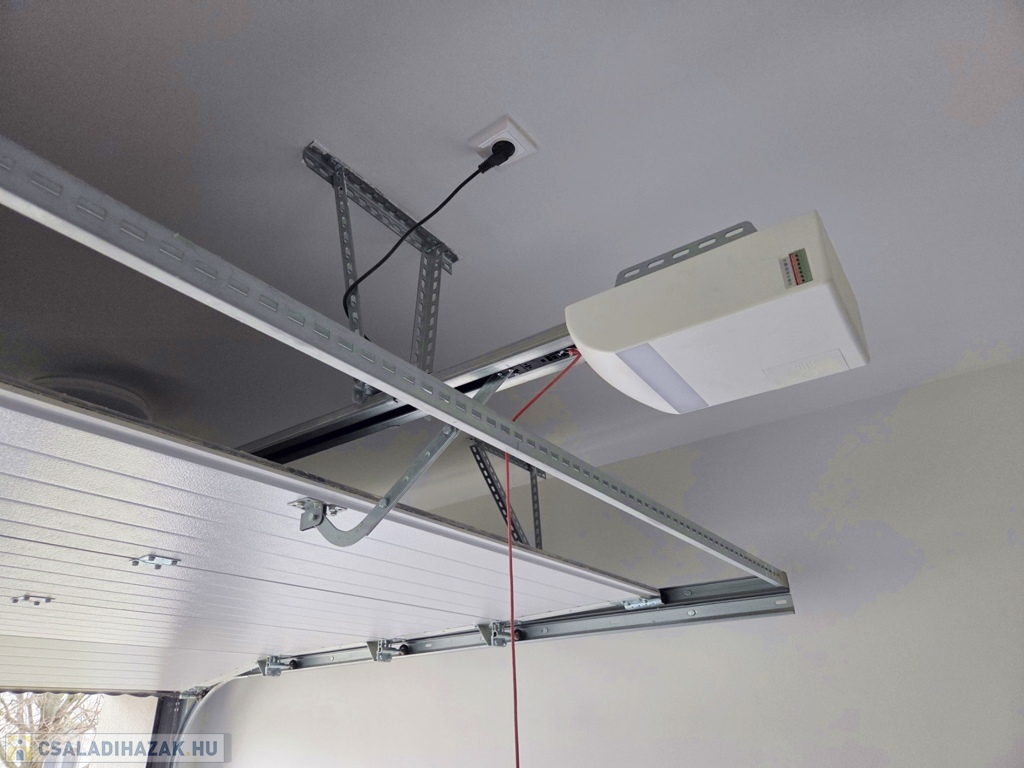 Utcáról megközelíthető fűtött garázs, motorosan mozgatható szekcionált minőségi kapuval, két bejárat, videós kaputelefon.