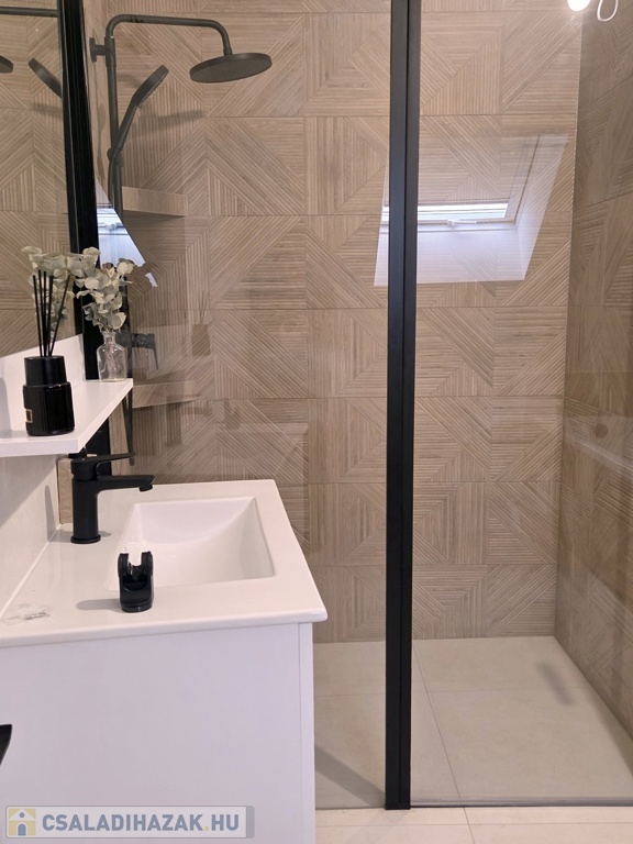 A tetőtekben közlekedő, 3 hálószoba, gardróbszoba, egy félszoba, külön WC, fürdőszoba káddal és zuhanykabinnal. A tetőtér feletti padlástér tárolóként használható.