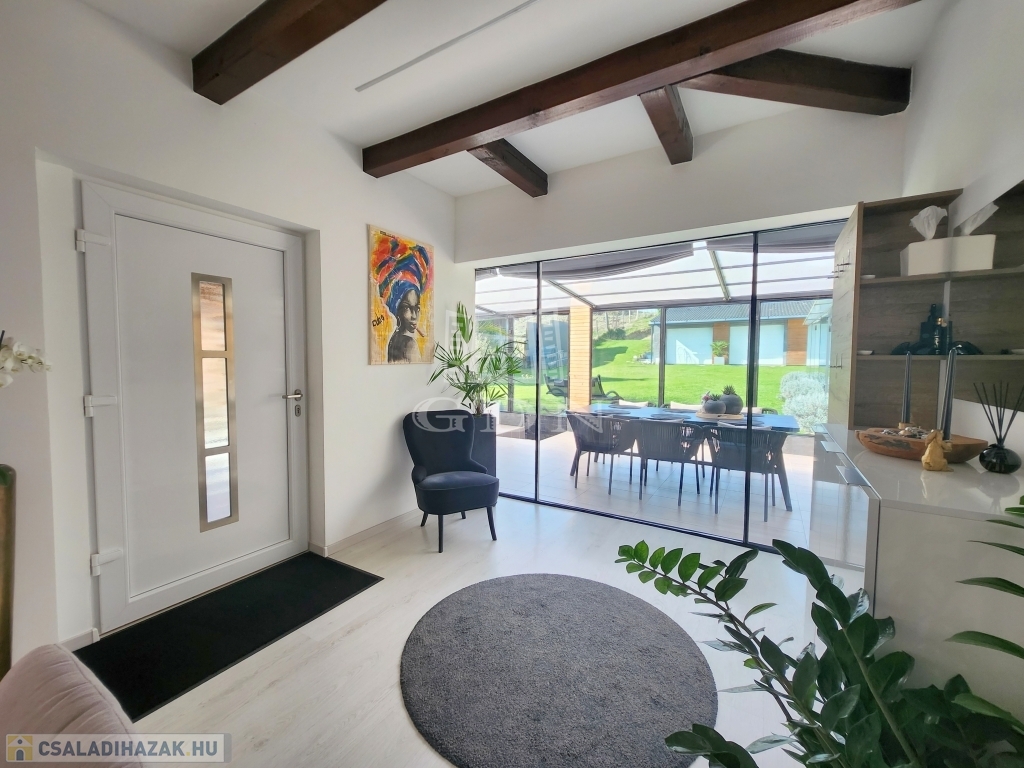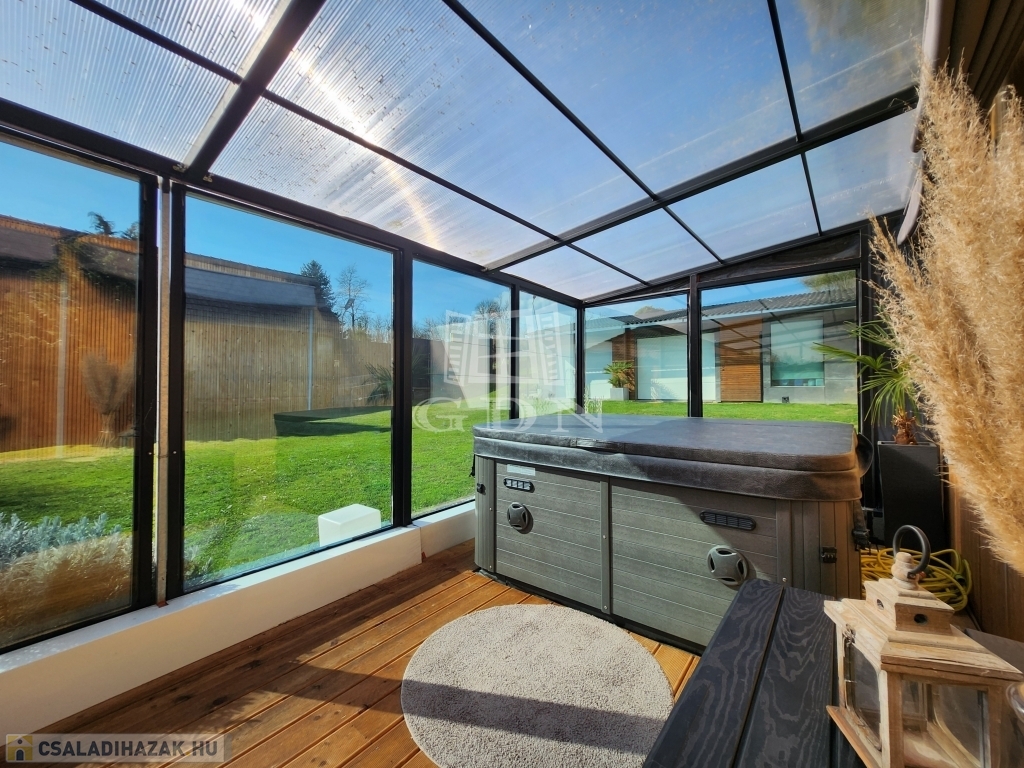 Az épület egyedi megoldásai mellett a teljes, újszerű állapotú bútorzatra is felhívnám a figyelmet, mely az "alap darabokon" túl, a jakuzzit, grillt, kerti bútort, dekorelemeket, szőnyegeket is magába foglalja - így megtartva az összhangot, melyet a színek, az anyagok és azok harmóniája alkot.