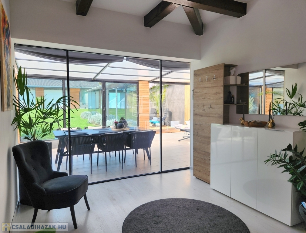 Igazából mindegy, hogy óriás ablakaiba, látszó gerendáiba, " jakuzzi sarkába" vagy mérhetetlen nyugalmába szeret bele, mindenképp a legjobb választás lesz, hiszen letisztult színhasználatával, prémium burkolataival, praktikus vonásaival és klasszikus elemeivel egy modern megjelenésű, minden igényt kielégítő otthonnak lesz büszke tulajdonosa!