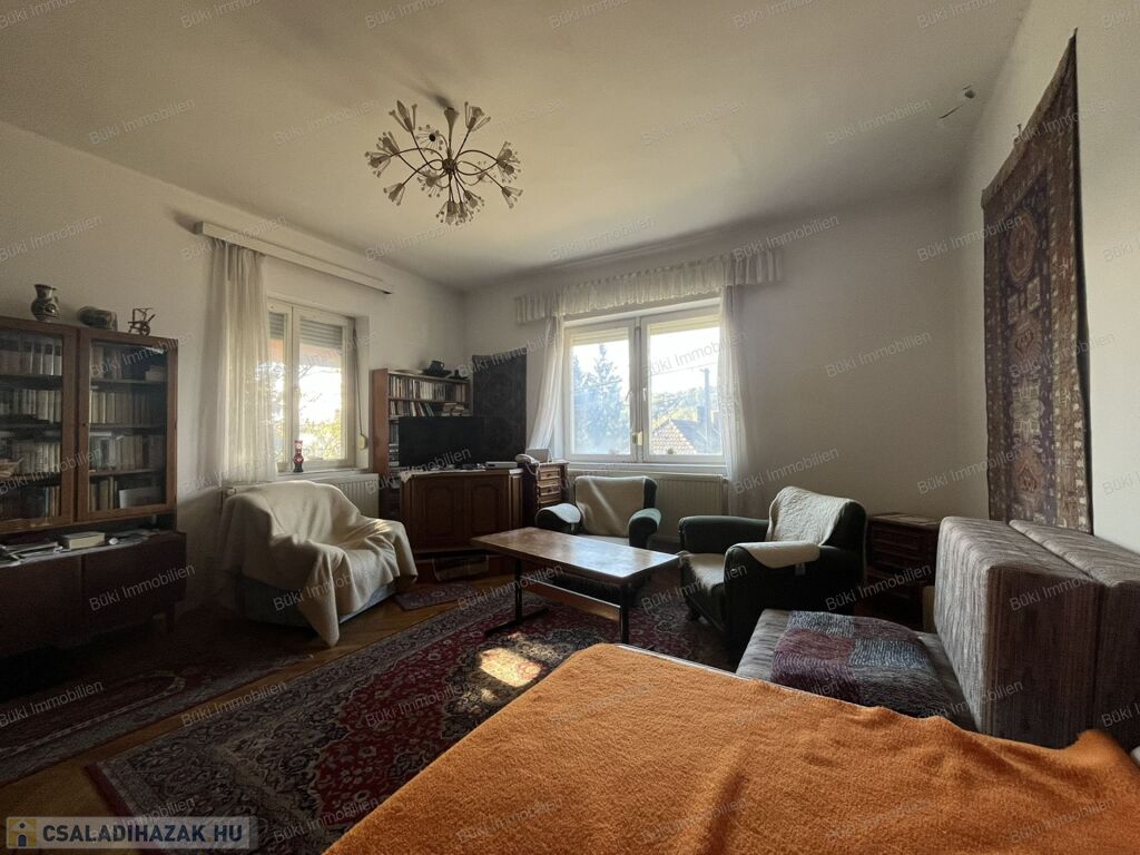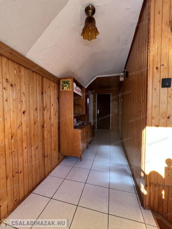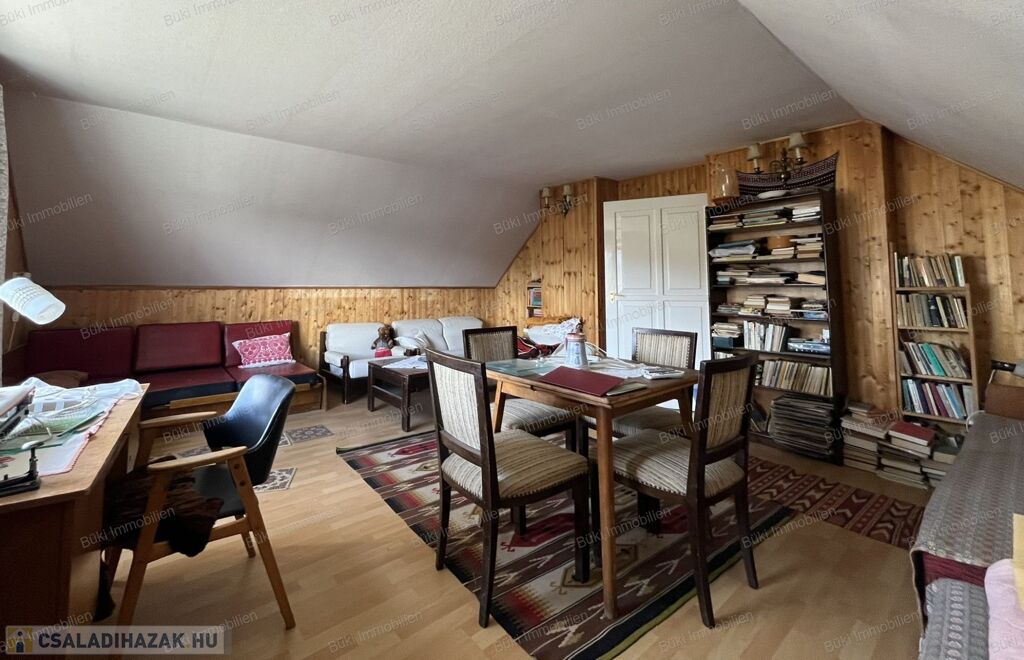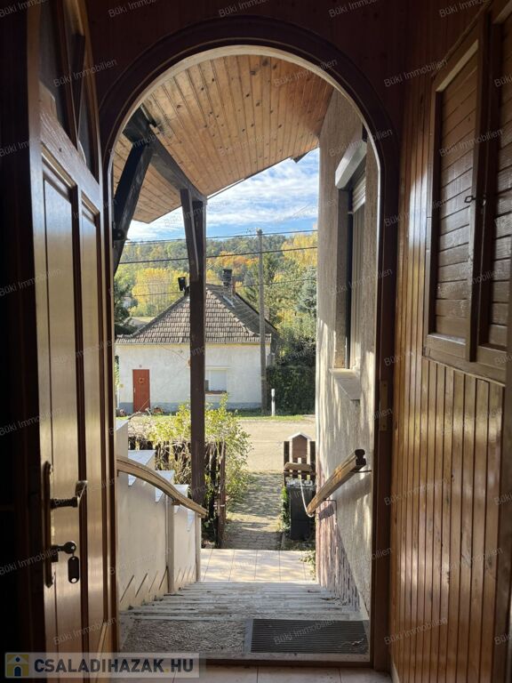 A 150 m²-es, két lakószintes ház egy rendezett utcában áll, ahol még ismerik egymást az emberek, és ahol a hajnal illata nem az autóforgalomhoz kötődik, hanem a Bakony hűvös-párás levegőjéhez. A 2200 m²-es telek szépen elnyúlik a ház mögött, és ahogy végigsétál rajta az ember, egyszer csak ott találja magát a fák között.