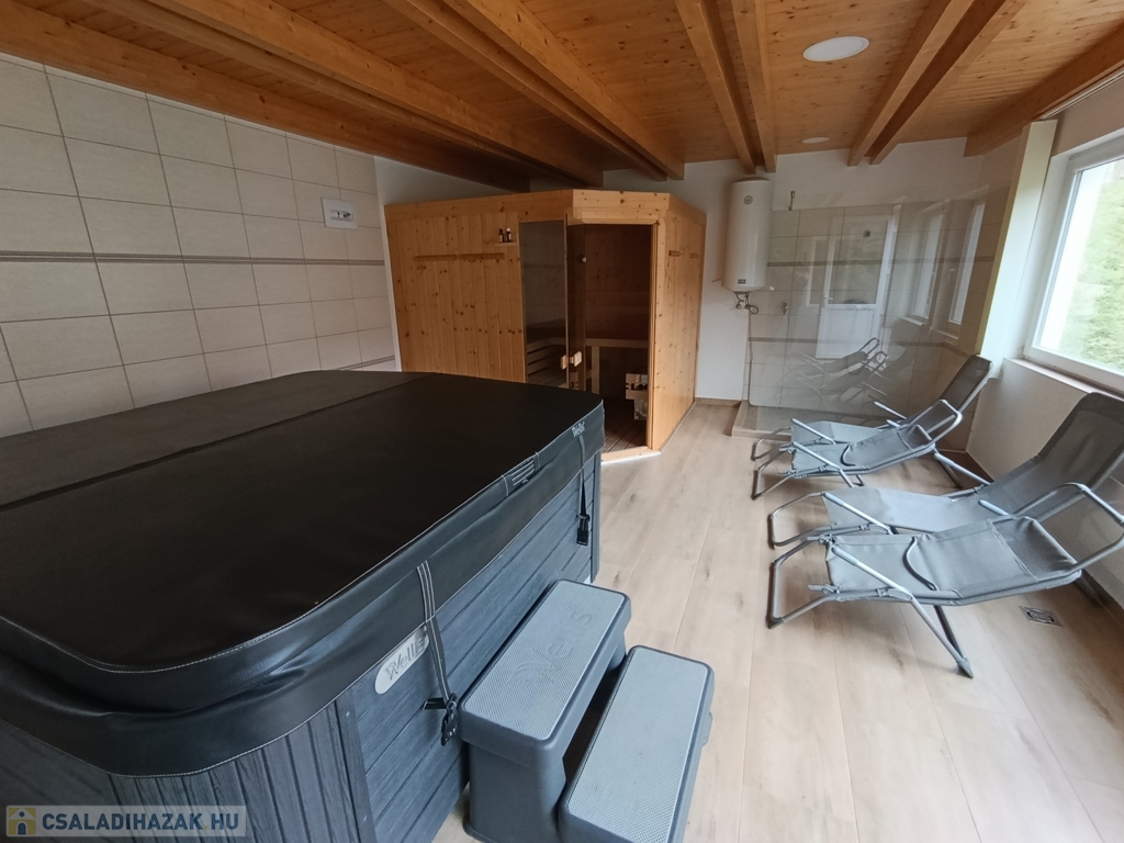 A két ház között egy wellness részleg gondoskodik a feltöltődésről: szauna és jakuzzi várja az ide érkezőket.