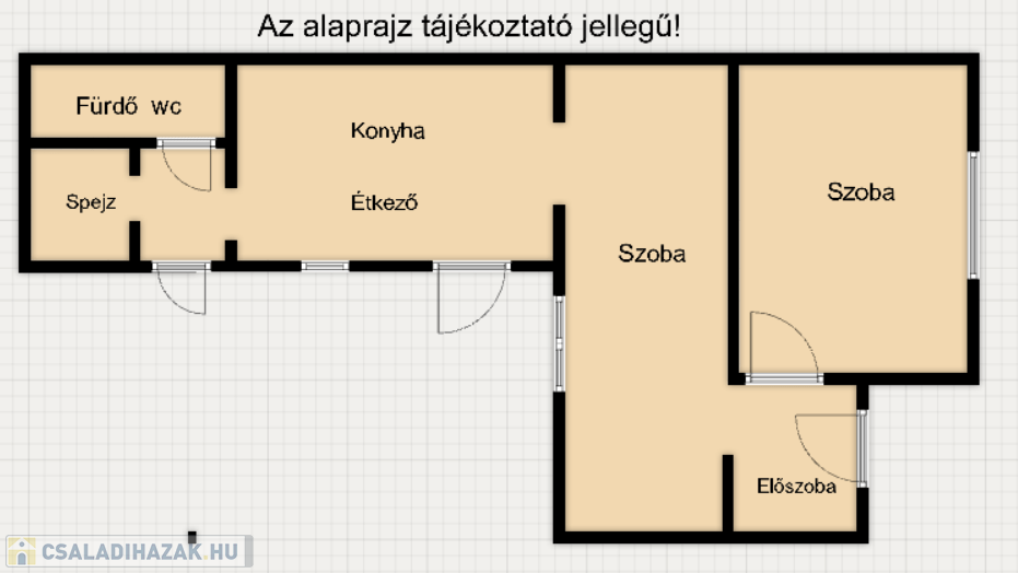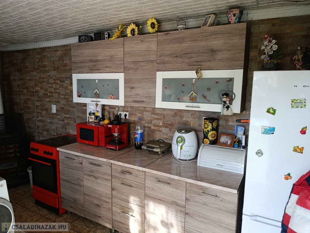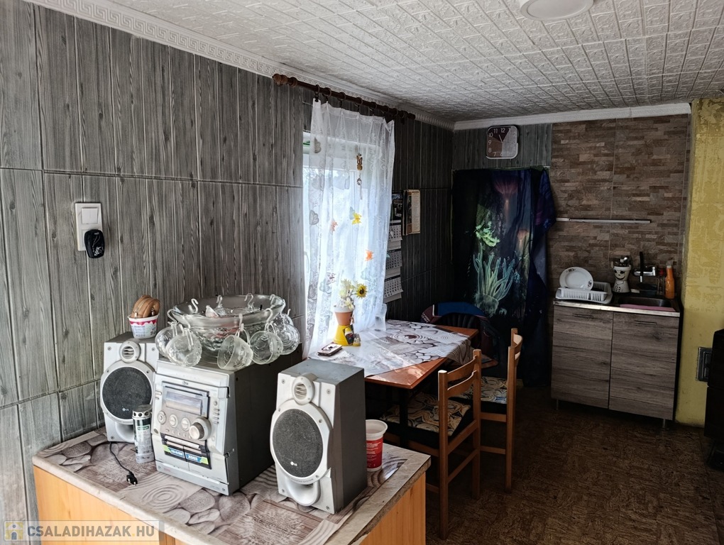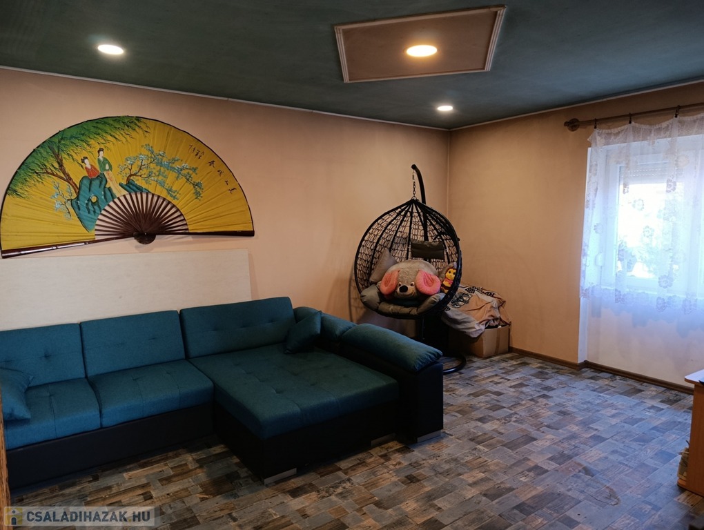 A ház az 1970-es években épült, vegyes (tégla–kő) falazattal és praktikus elosztással: előszoba, konyha-étkező, fürdő–WC, két szoba és spejz szolgálja a kényelmet.