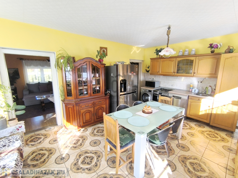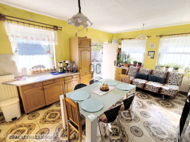 Megvételre kínálunk Bakonyszentlászlón egy 73,5 nm-es hasznos lakóterületű, 2 szobás jó állapotú családi házat tágas konyha-étkezővel, garázzsal, melléképülettel.