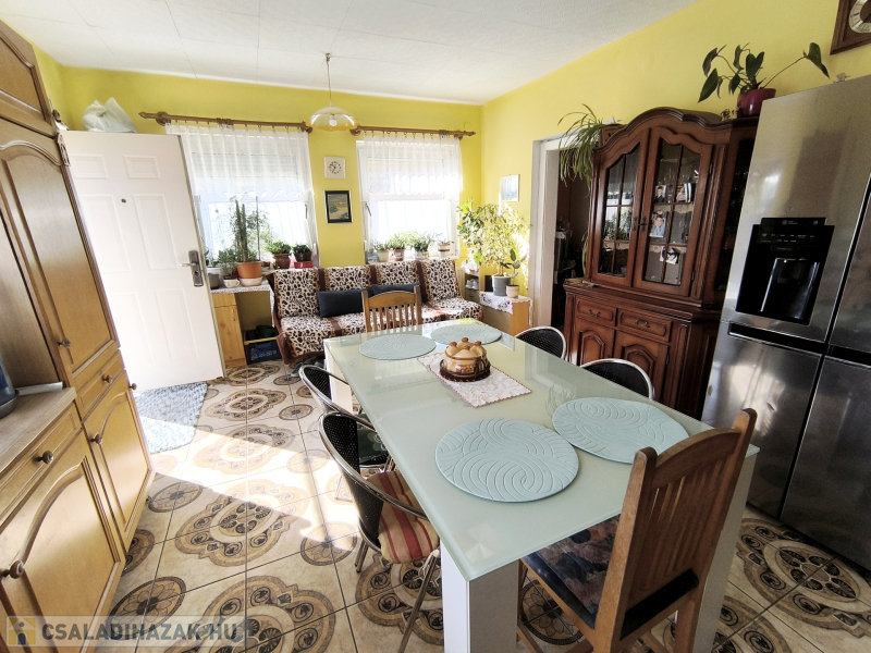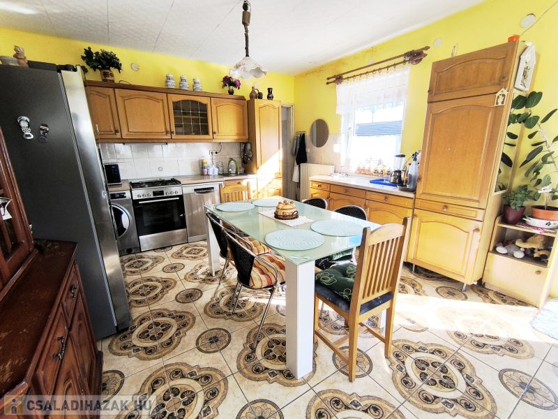 Megvételre kínálunk Bakonyszentlászlón egy 73,5 nm-es hasznos lakóterületű, 2 szobás jó állapotú családi házat tágas konyha-étkezővel, garázzsal, melléképülettel.
