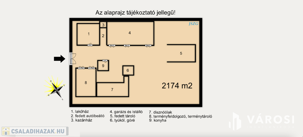 Az ingatlanon emellett számos egyéb kiegészítő épület is megtalálható, mint például disznóólak mintegy 100 négyzetméteren, csirkeól, nyitott takarmánytároló és góré. Ezen kívül egy ásott kút és 23 jól termő gyümölcsfa (alma, birs, sárgabarack, őszibarack, körte, szilva, füge) szolgálja majd az ingatlan jövőbeli gazdáját.