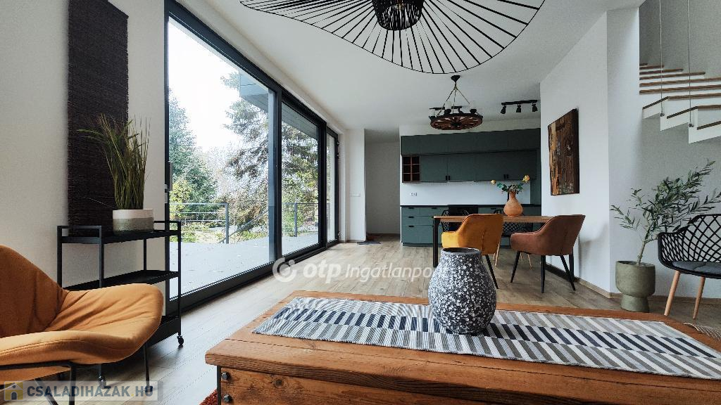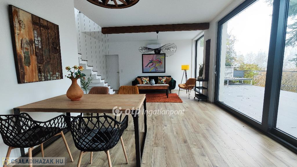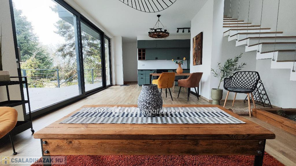 Balatonakarattya csendes, vízparti utcájában található ez az új építésű, 2022-ben épült modern, erdei környezetben található családi ház.