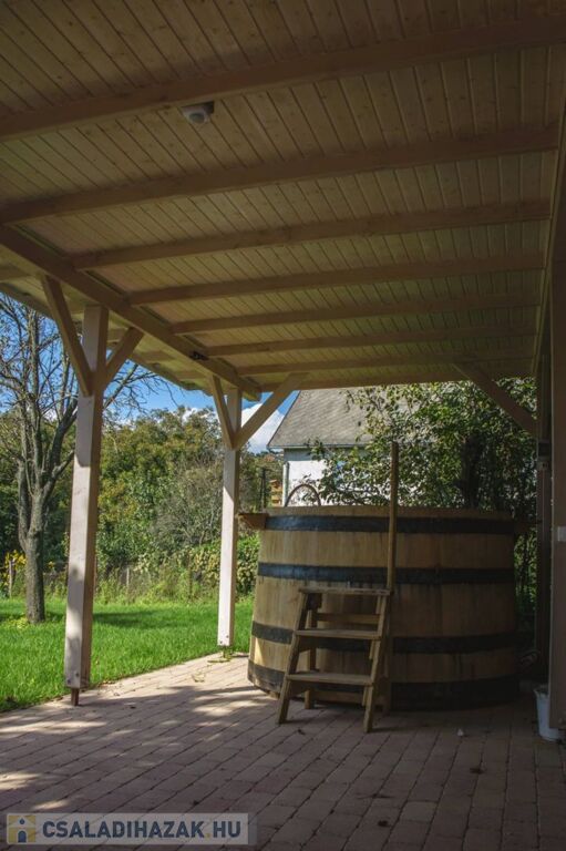A tágas terasz, a gondozott kert és a wellness-elemek – medence, szauna, dézsafürdő – olyan életminőséget nyújtanak, amely ritka a környék kínálatában.