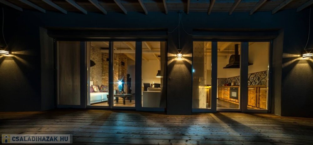 A nappaliból közvetlen kijárat nyílik egy nagyméretű teraszra, ahol igazán élvezhető a kert hangulata. Plusz szoba kialakítása is könnyen megoldható.