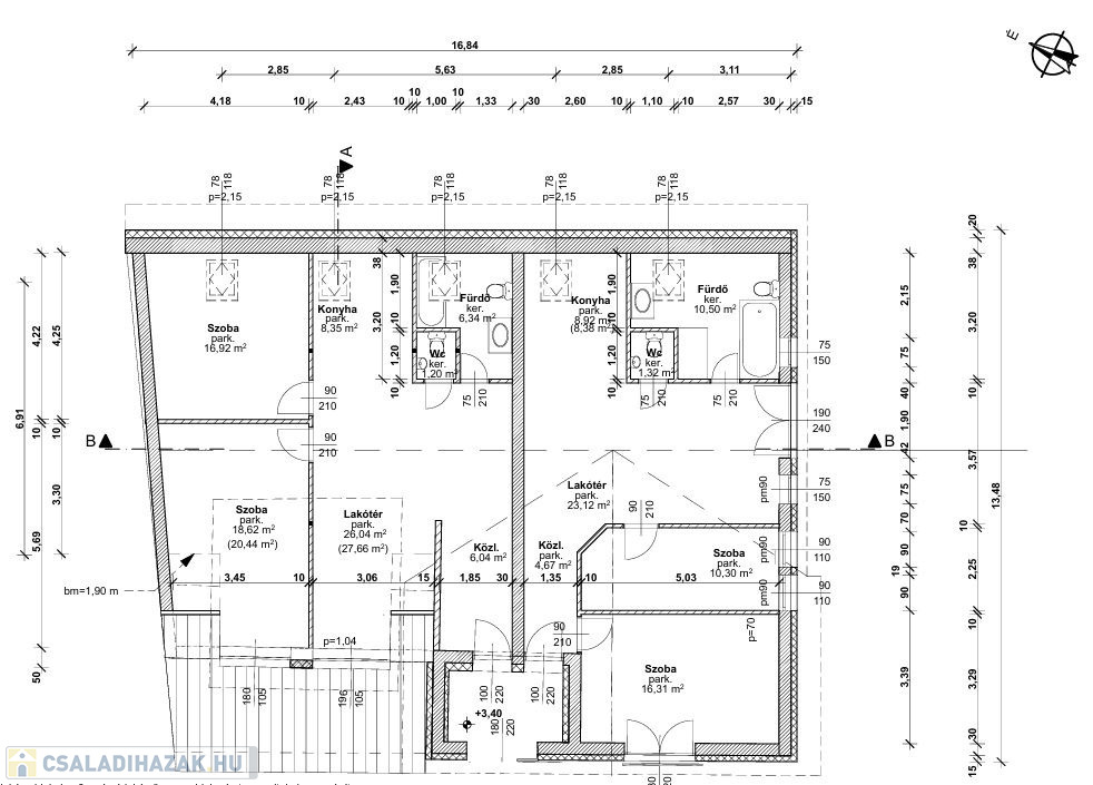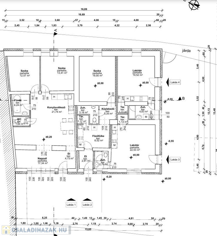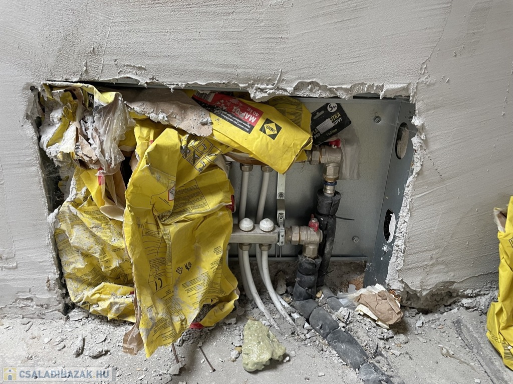 Az alsó szinten a tervek szerint 4 lakás lett kialakítva, ahol a belső falak már állnak, így a vásárló könnyen befejezheti az építkezést.