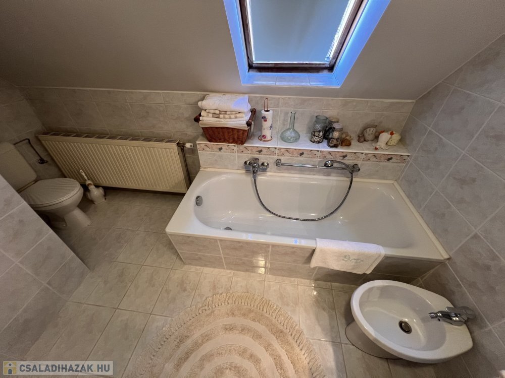 Fűtés: gázfűtés , további kémény van (cserépkályha, kandaló), 5 cm szigetelés