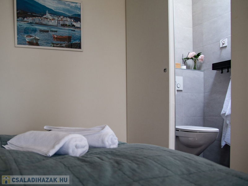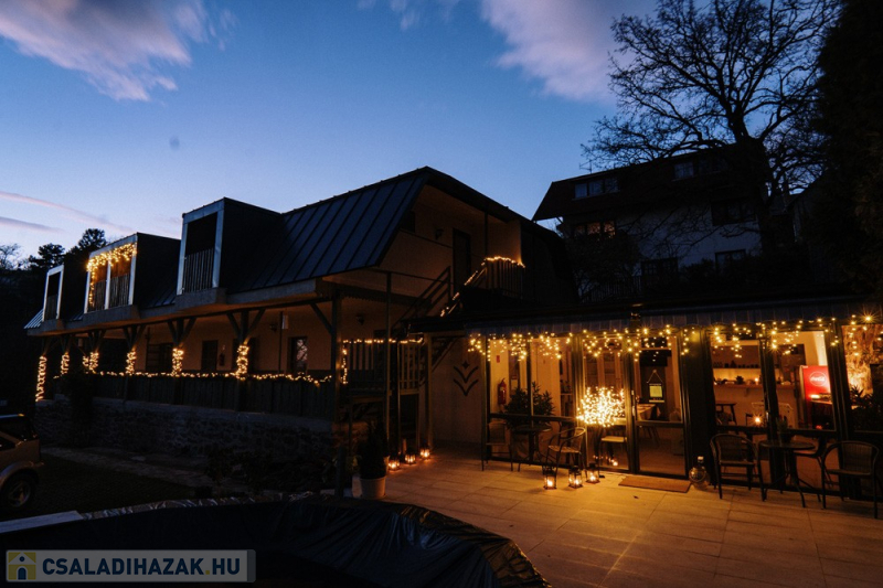 A villamos hálózat 3 fázisú, minden egyes helyiség külön biztosítékon van. Vendék kapacitás 32 fő. Társasház esetén a kialakítható egységek száma korlátlan. Az ingatlant 100 millió Ft. összegű, 2,5%-os hitel terheli még 7,5 évig, mely a tulajdonos cég megvásárlásával át is vállalható. 50 m2 erejéig bővíthető még az ingatlan. Igény esetén a jelenlegi tulajdonos segít az üzemeltetésben.