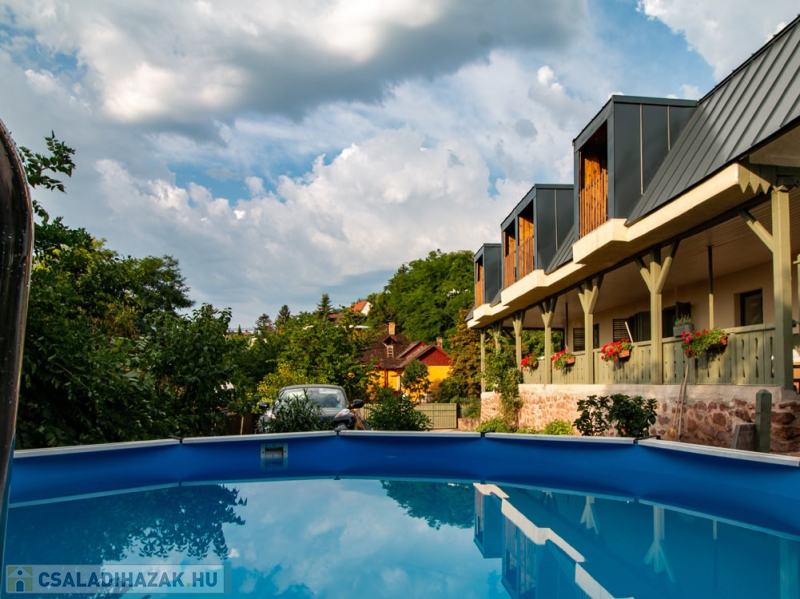 Kiváló befektetés! Év végéig most 55 millió Ft-tal olcsóbban megveheti. Balatonalmádi központjának, csendes mellékutcájában 2 éve teljesen felújított 9 db. kisebb apartmanból, 2 db. lakosztályból, 1 db. konyha-étteremből álló villa épület panorámás teraszokkal, erkélyekkel, kültéri medencével, pincével, 9-10 gépkocsi részére alkalmas felszíni beállóval eladó.