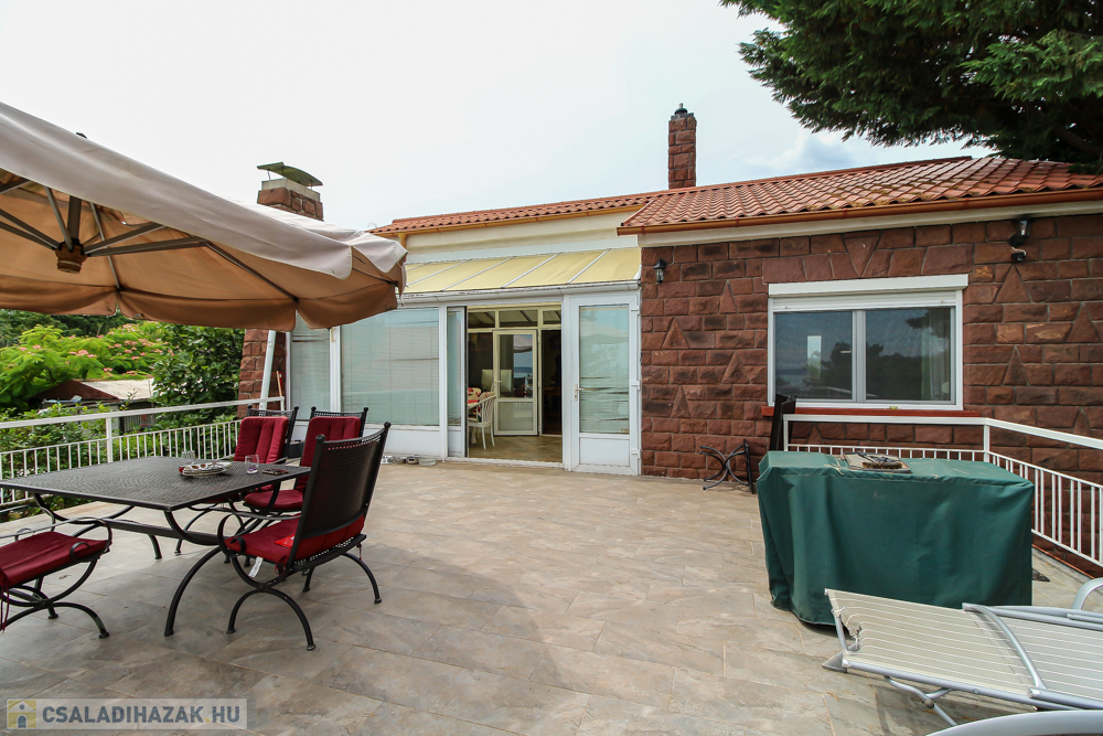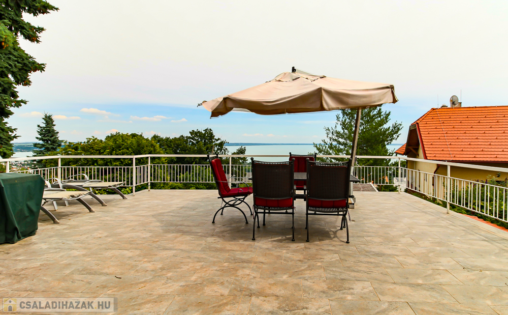Az eladásra kínált családi ház Balatonalmádi Villanegyedében fekszik, egy 2074 négyzetméteres és valóban balatoni panorámás telken. A közel 50 négyzetméteres teraszról páratlan kilátás nyílik a tóra Kenesétől egészen Tihany csücskéig és még tovább. Nézd innen a kékszalagot!