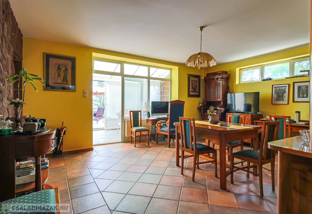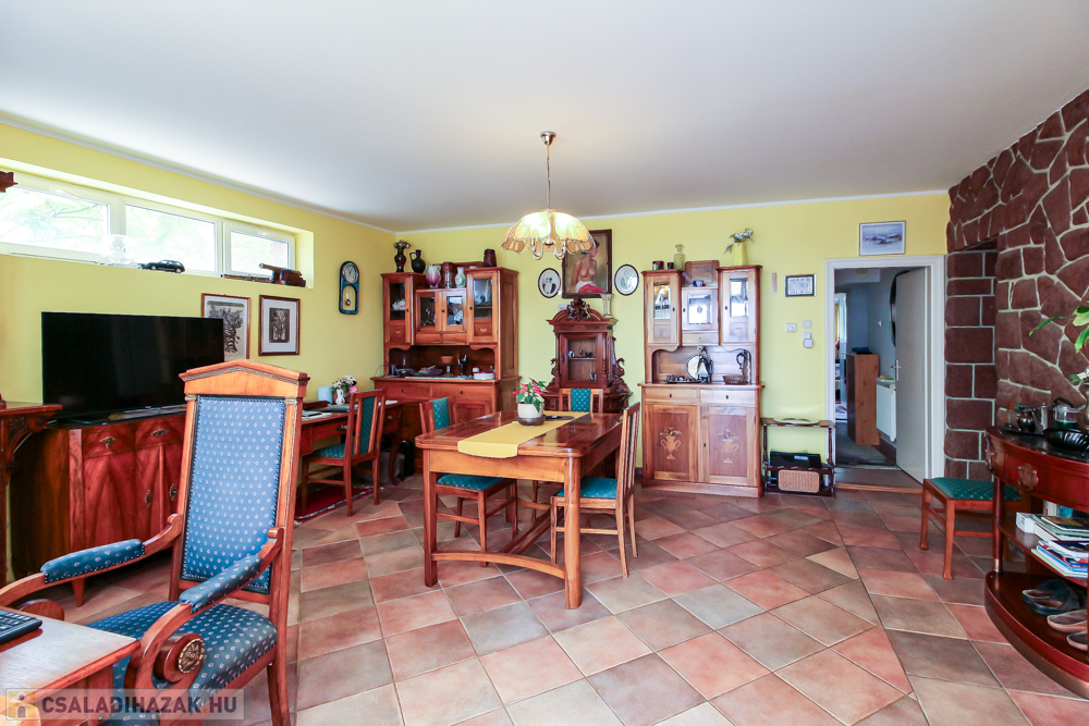 Az épület a 90-es évek derekán a térségre jellemzően vöröskőből és téglából épült. Ez a remek állapotú ház mérete nettó 140 négyzetméter és egy hamisítatlan balatoni borospincét is magában rejt . Ősfás kertje kiváló helyet biztosít a kültéri kikapcsolódásra, legyen szó sütögetésről, családi összejövetelekről, napozásról, a lényeg, hogy itt kipihenheted magad. Megközelítése aszfaltozott úton lehetséges, a strandtól kb. 1.5 kilométerre helyezkedik el.