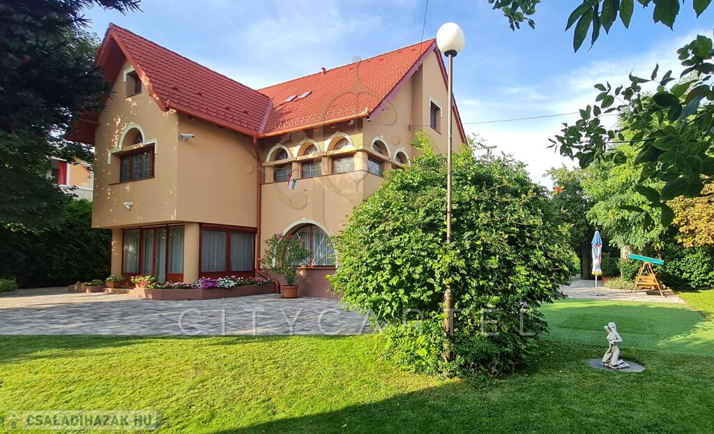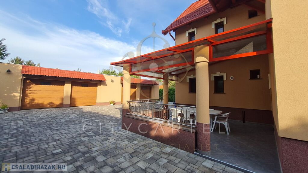 A kert egy része térkövezett, a másik parkosított, gondozott. Kerti tó árasztja a nyugalmat! A tulajdonos nagy hangsúlyt fektetett a minőségi anyagok használatára, a részletek kidolgozására!