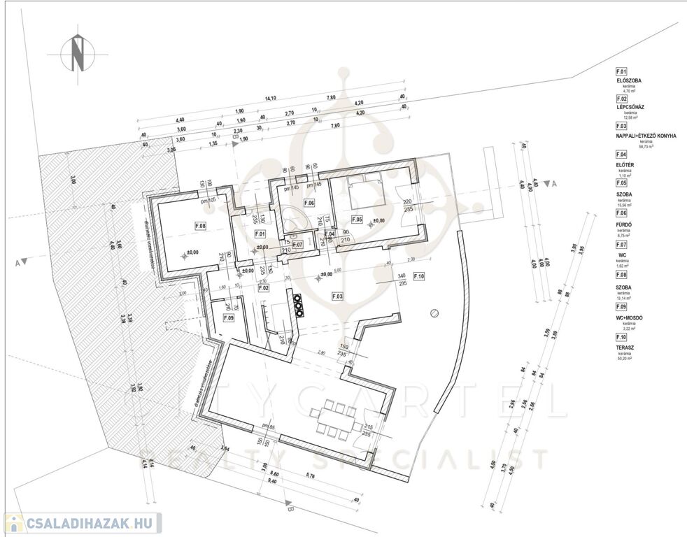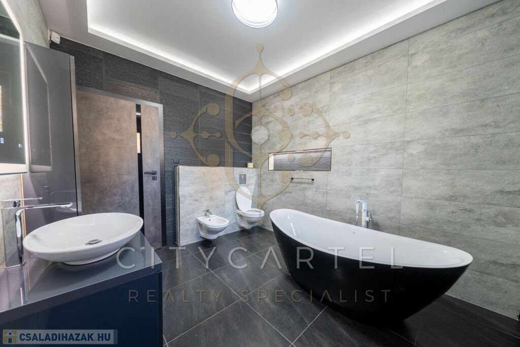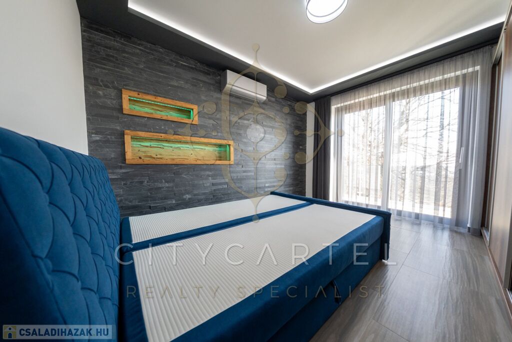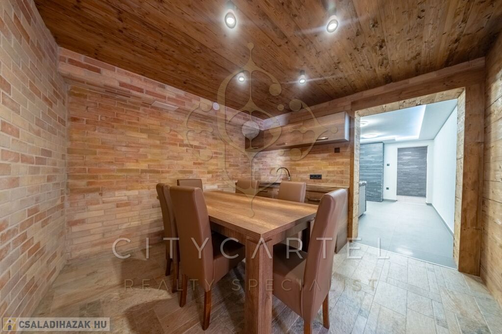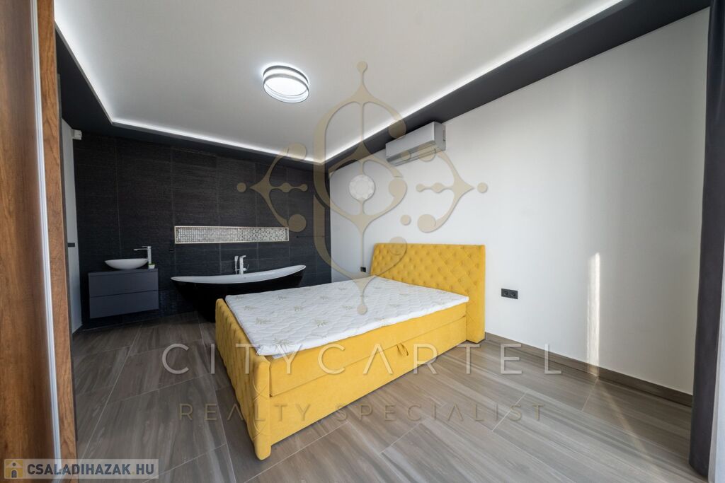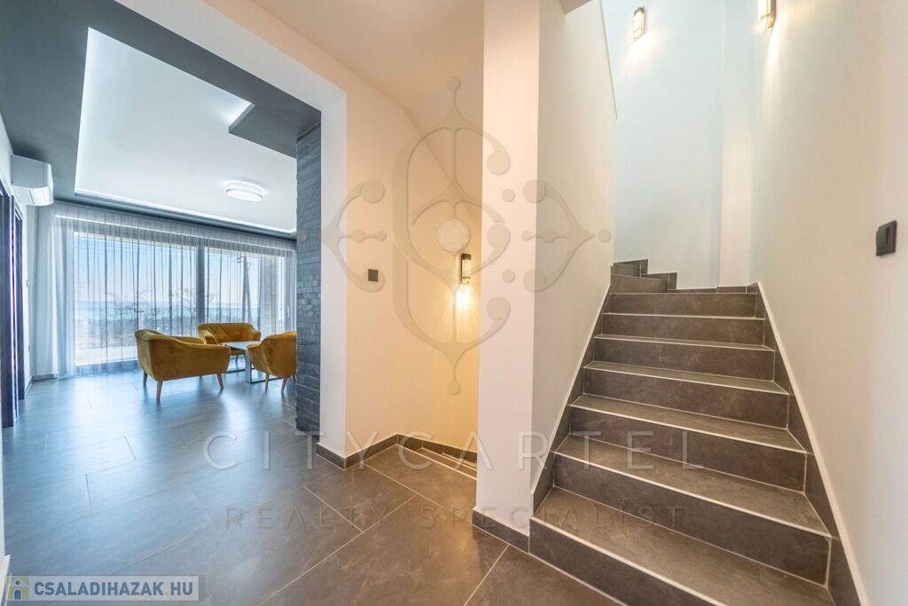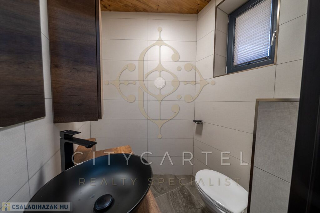 Felső szint: amerikai konyhás nappali, hálószoba, fürdőszoba, vendégmosdó, 50 nm-es terasz, 1 garázs