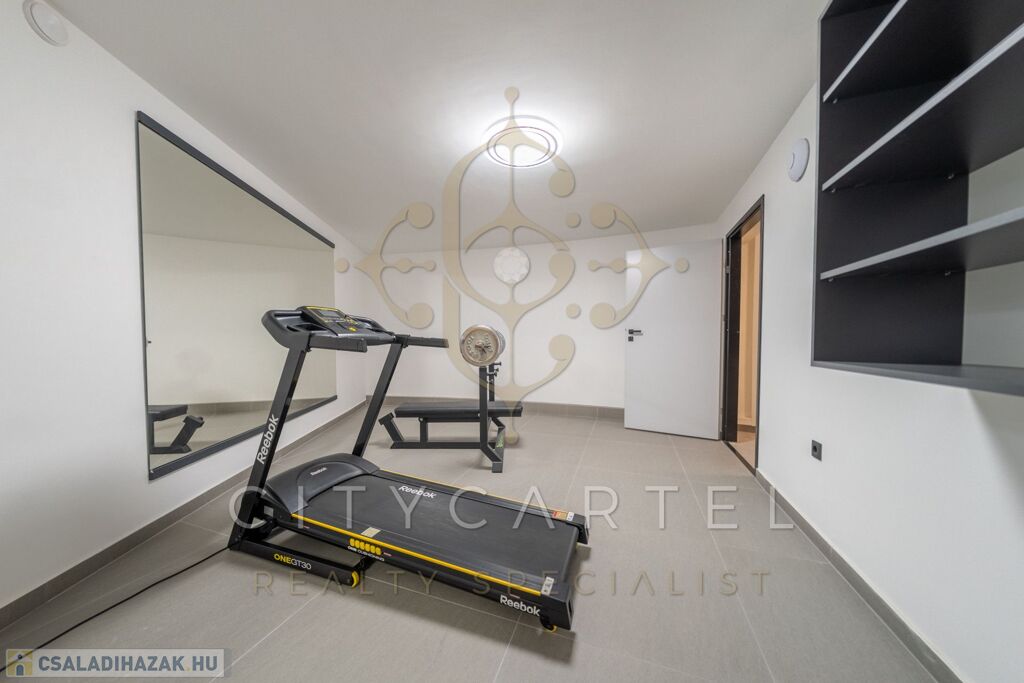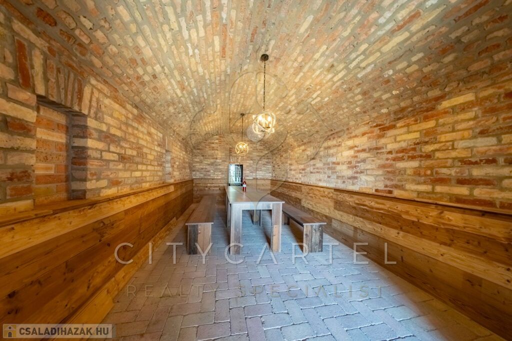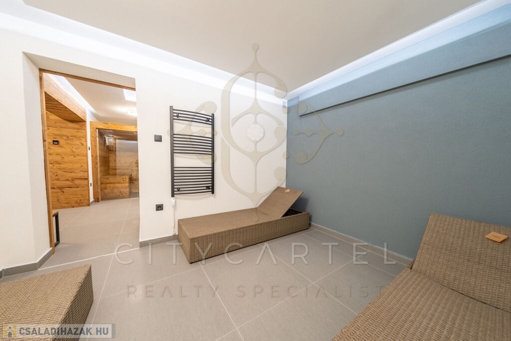 Alsó szint: wellness rész: 10 fős szauna, jacuzzi, edzőterem, pihenőszoba, fürdő, külön wc, konyha, borospince,