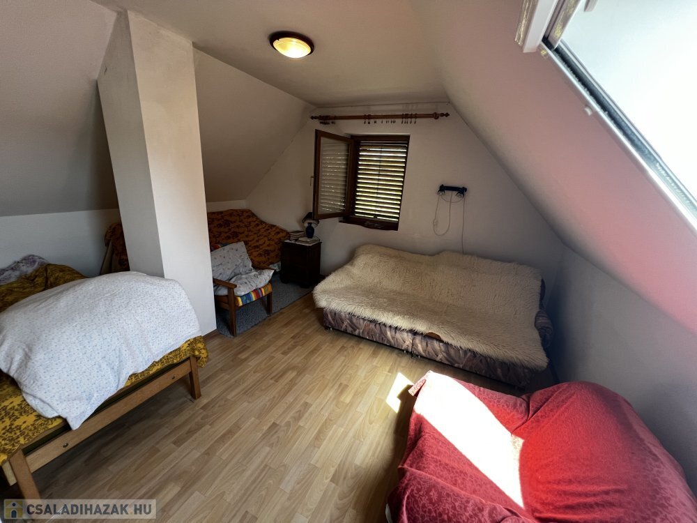 Emelet: közlekedő, három szoba, zuhanyzós fürdőszoba és külön WC.