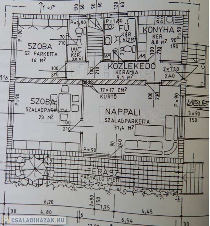 - lakótér: 212 nm + terasz, 24 nm és 26,25 nm garázs, telek területe: 537 nm