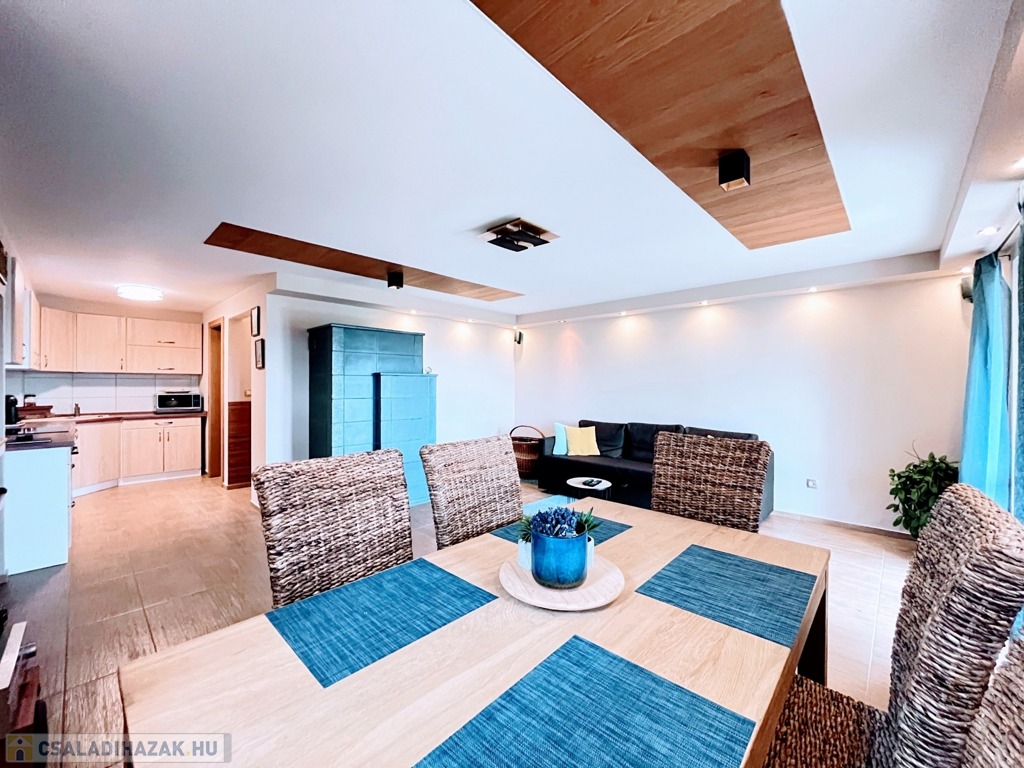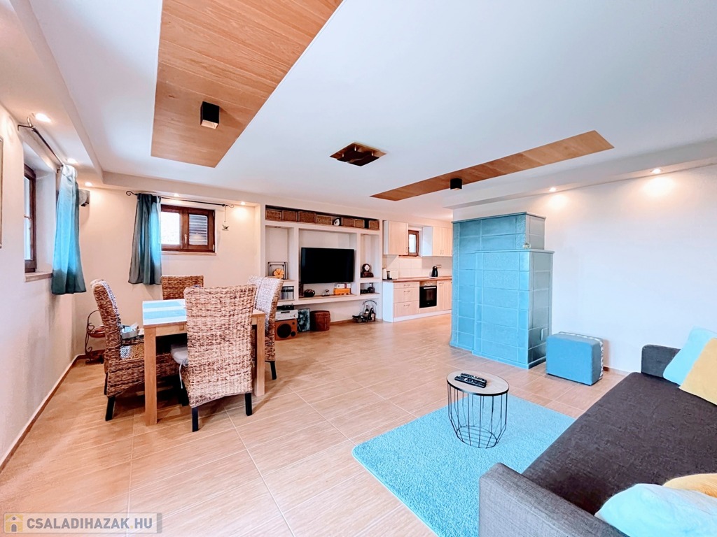 A ház teljes területén padlófütés üzemel, melyet egy központi elektromos kazán (éjszakai árammal) lát el meleggel. Az alsó szinten távoli, applikációval szabályozható a fűtés. Szintén az alsó szinten találjuk a cserépkályhát, mely otthonos meleget biztosít a téli napokon.